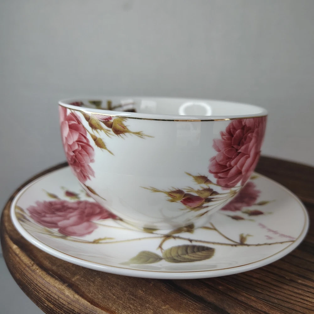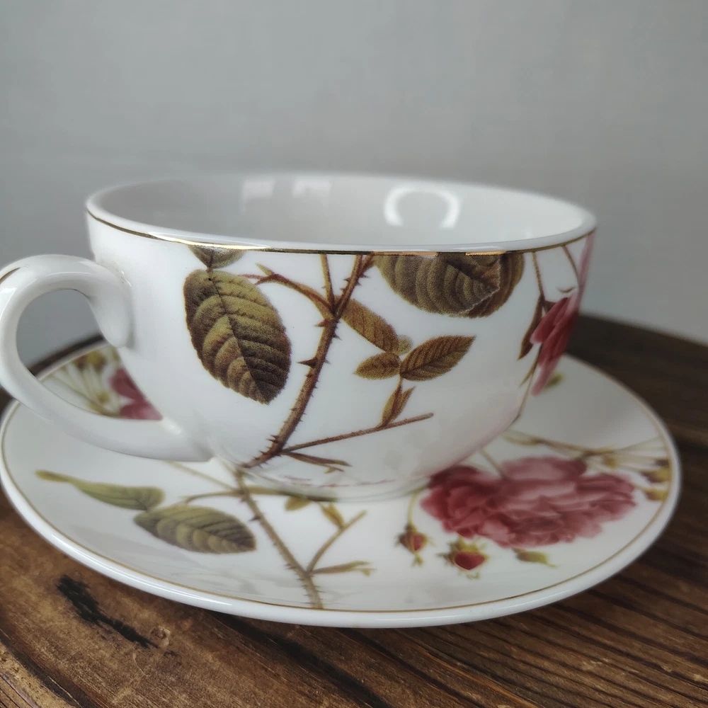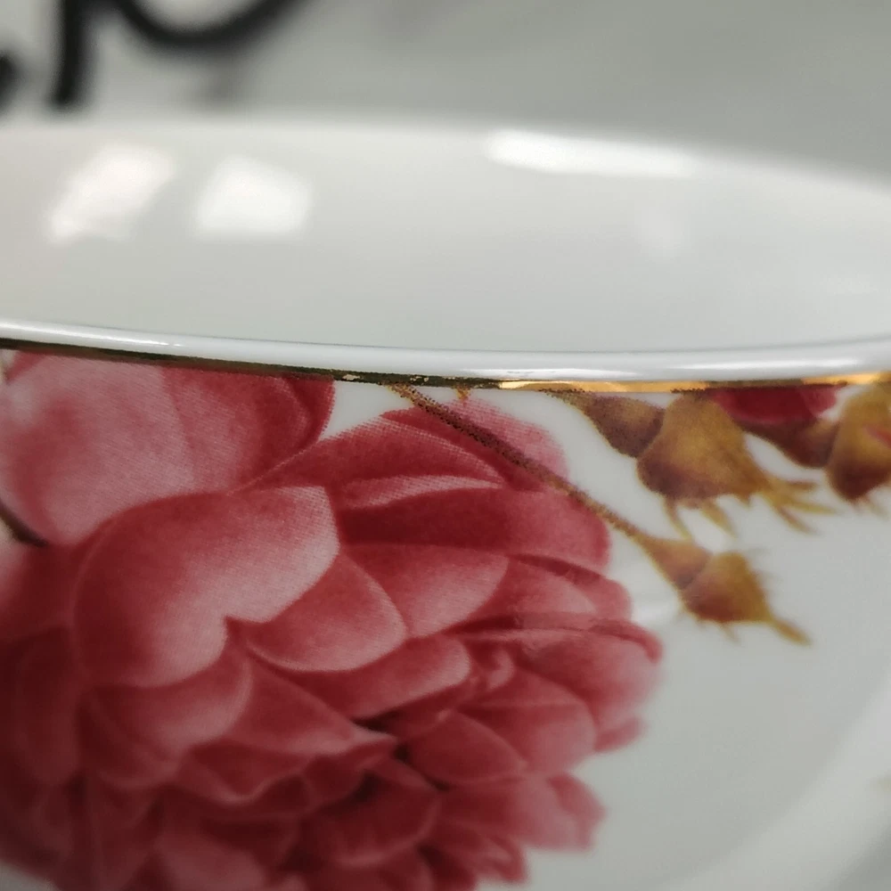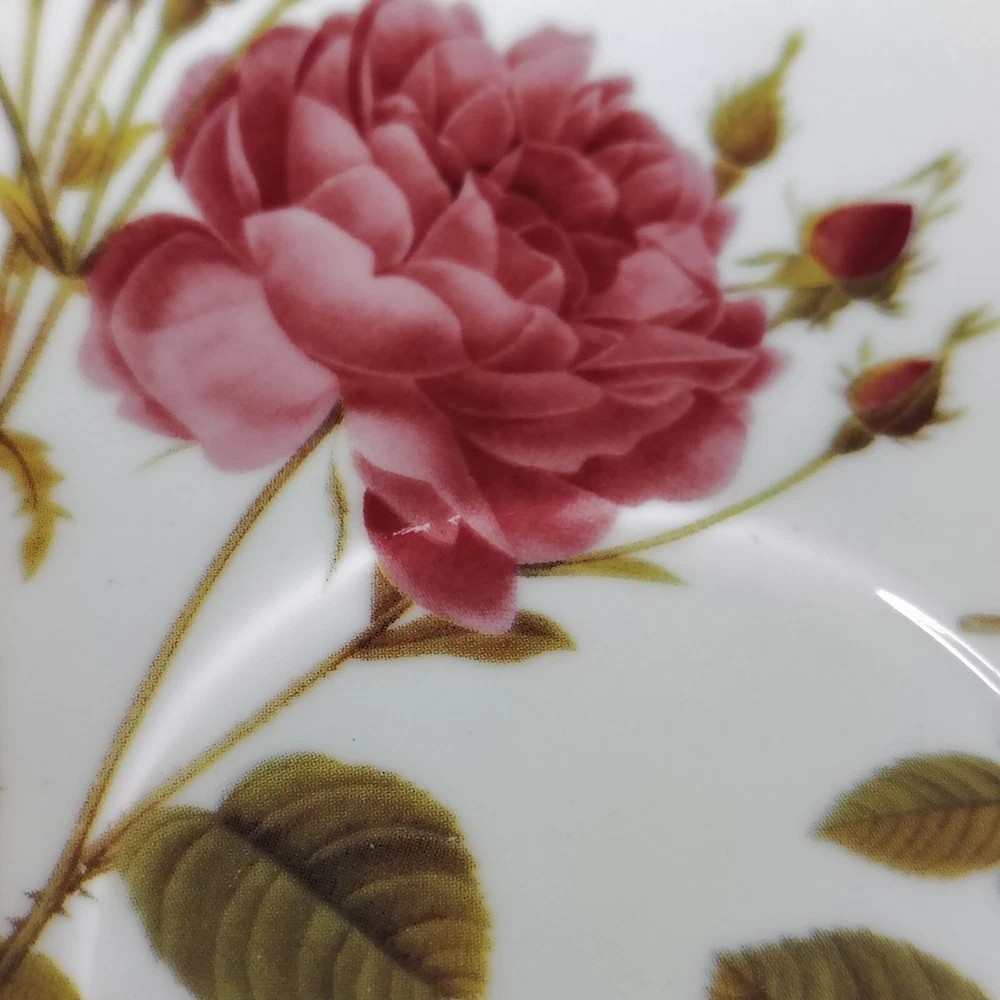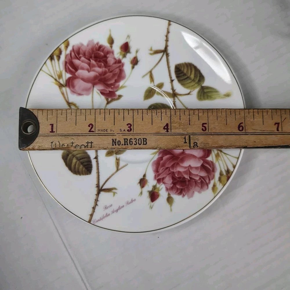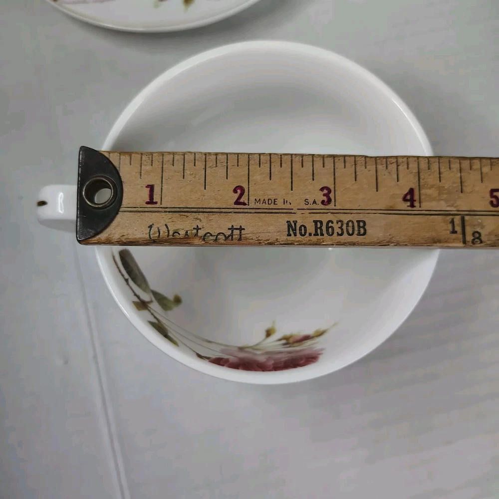 Some scratches on the saucer and on the teacup. Please see measurements and review all pictures provided which show condition and zoom in to get a closer look. Let me know if you have any questions! : )