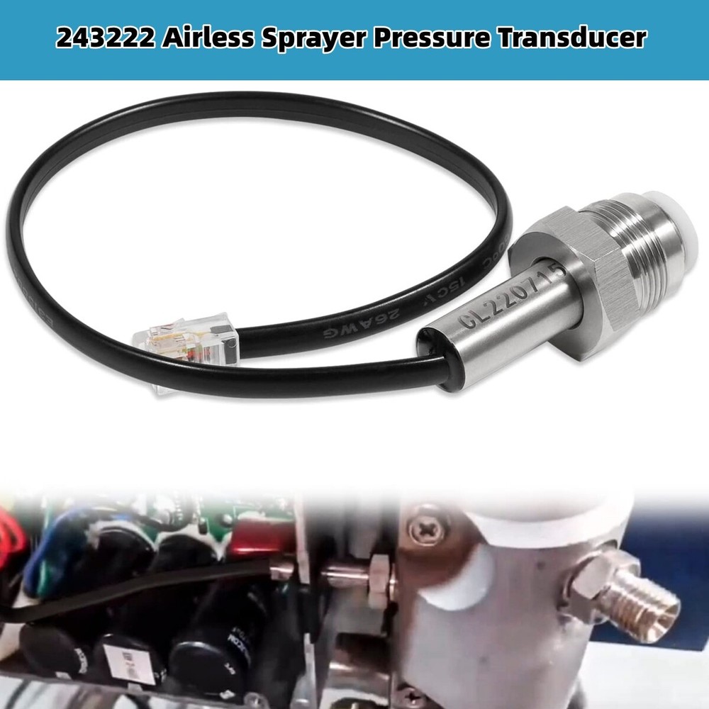 Pressure Transducer Sensor 243222 For Graco Airless Paint Sprayers 390 395 495 【 Models are】 190ES, Ultra Models -210ES,210PC,230PC,295ST;UltraMax and UltraMax II-390, 395, 490, 495, 595;UltraMax and UltraMax II -695, 795, 1095, 1595;PC Pro- 390 395 490 495 595 695 795 1095 1595;GMAX and GMAX II -3400, 3900, 5900, 7900;Linelazers-3400, 3900, 5900, 7900. Please note: This product is compatible with Graco sprayers and is not compatible with Titan sprayers. 【Wide Application】 This Pressure Transducer is used in a wide variety of electric and petrol airless sprayer models. Directly replace part for 243222 【Superior Quality】 Constructed from high quality stainless steel, with wear resistant washer, durable and sturdy. 4-Core silica plug fits perfectly with the model of the machine. 【Reliable Performance】 The pressure transducer connects between the high pressure filter and the control board. The transducer is designed to send a signal to the control board which uses this information to knowwhen the sprayer has reached the maximum pressure. 【Easy Installation】 It takes you less than a few minutes to install, guided by the relevant instructions. 【Satisfactory Service】 If you are not satisfied with our products.You can request a full refund within 60 days to support a 12 month warranty.