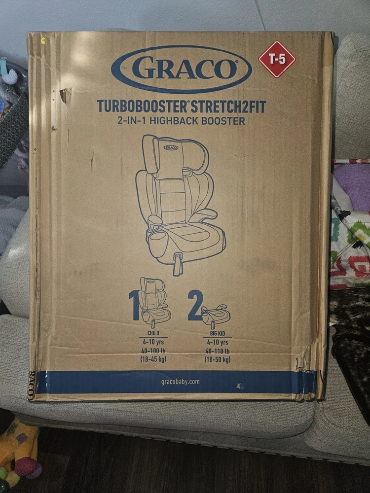 The Graco Turbobooster Stretch2fit 5T Car Seat is designed for toddlers and features a stretchable design for a secure fit. It comes in a sleek black color that is suitable for both boys and girls. This car seat by Graco is a unisex option that provides safety and comfort for young children during car rides.