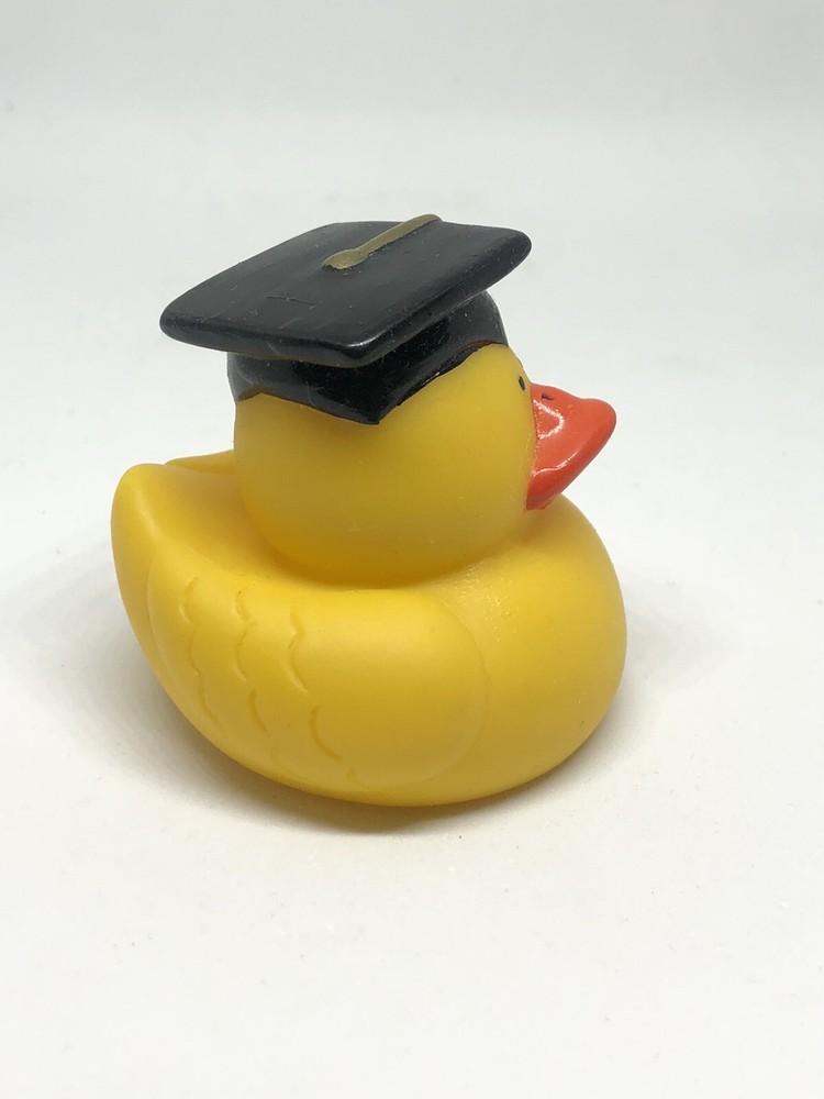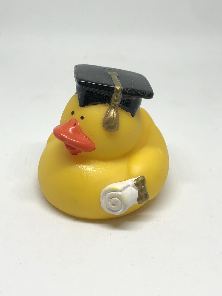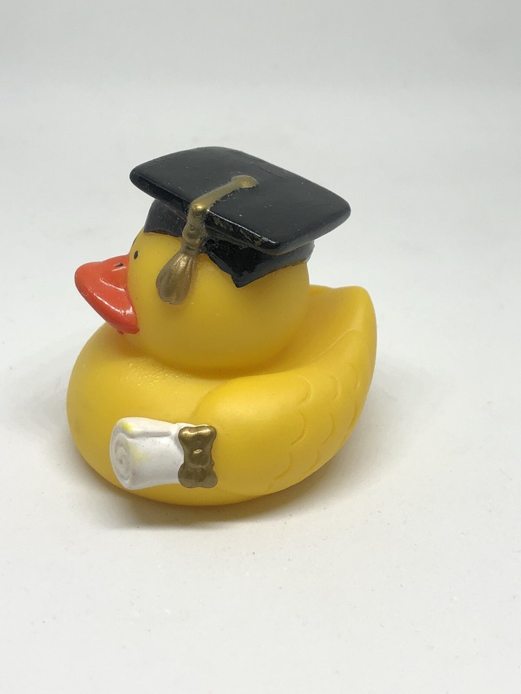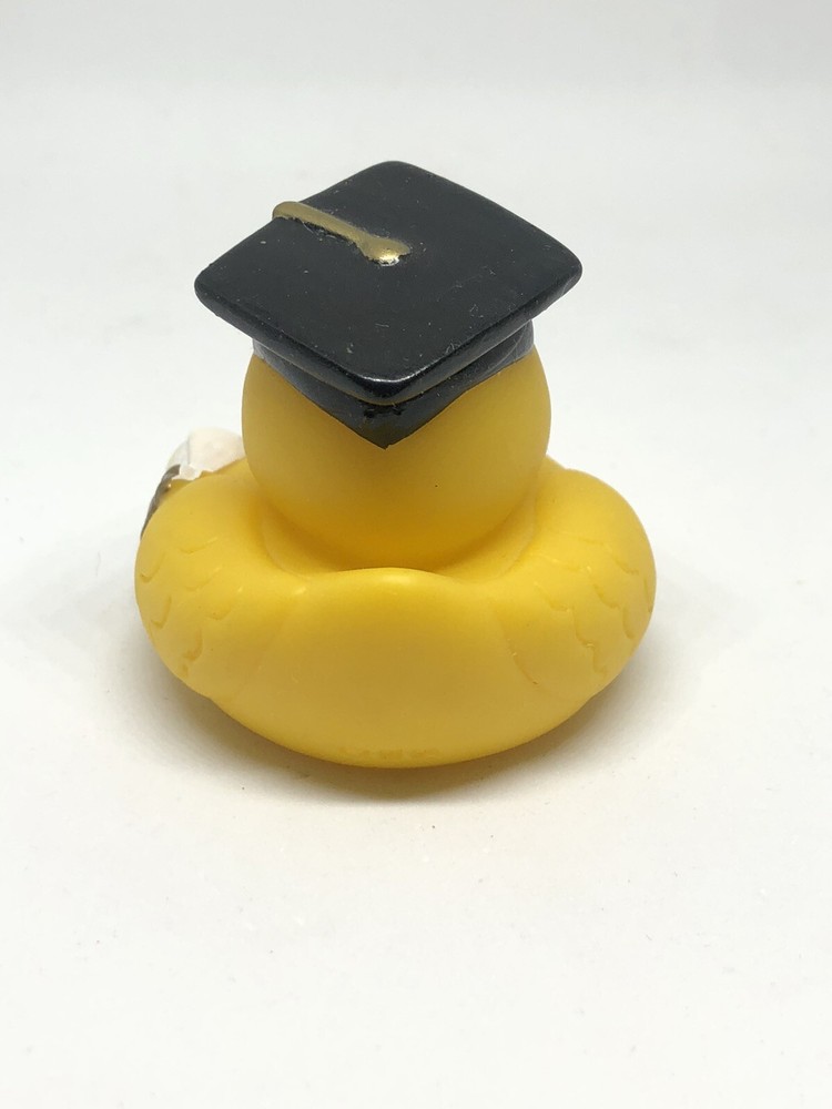 Graduation Rubber Duck 2” Ducky Black Cap Holding Diploma Bath Pool Jeep Toy. Note: Item has mark/scratches; shown in photos! Thank you for stopping by!