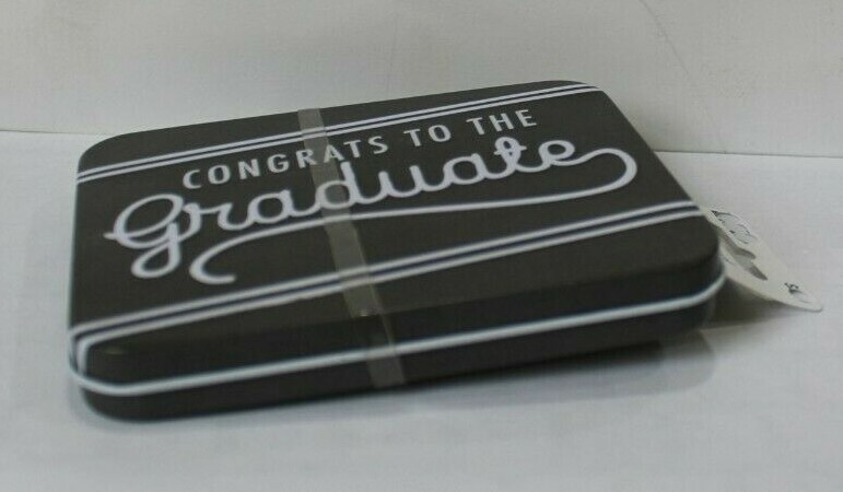 "Congrats To The Graduate" Gift Card Holder Tin Box 4.5 in x 3.5 in Grey & White NEW with Tags Please ask me, I will do my best to answer quickly. Please leave Positive Feedback for me as I will try my best to provide the best quality items in my new store here on eBay. I do have another store here on eBay that I started about 10 years ago & did as a part time job and have been successful with it. From my success here on eBay I decided to open a Brick & Mortar Store in my hometown in 2020 during the height of the Pandemic. I had already started the process back in early fall of 2019 and signed a lease contract. Even though the beginning of 2020 didn't show much promise I still pushed forward to open my Boutique in my hometown during the month of July 2020. Now I have decided to do both my Boutique in my hometown & I am now starting out fresh with a completely new store here on eBay with totally different merchandise than I've had in the past. A fresh new start :) I will still have my other merchandise here on eBay which mainly consist of clothing. My username for that location here on eBay is heartofgold150. Thank you for looking and or purchasing my products. God Bless You & Stay Safe :) #382