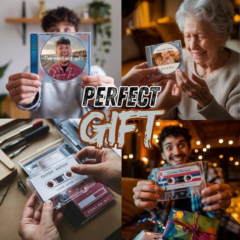 Mark the end of an unforgettable chapter with a CD full of songs that capture your best memories together. NSTRUCTIONS CD 1- Choose your tracklist, up to a maximum of 79 minutes of music. 2- You can share your playlist from your favorite music streaming platforms, or simply send it to us directly, listing the artist and song title for each track. 3- If you're sending a playlist link, make sure it is public, so we can access and view it without issues. Choose Up to 3 Photos for Your Custom CD: -Cover photo (this will be the front of the jewel case) -CD photo (printed directly onto the disc - keep in mind it's a circular surface) Important: Anything placed in the corners might not appear due to the round format. -Interior photo (the image displayed when the case is opened) A IMAGE REQUIREMENTS: Photos must be high quality and square format. . If you send vertical images, white borders will appear on the sides. You can easily crop and adjust your photo using your phone before sending. Avoid using screenshots or photos from websites, as they are usually low resolution and may appear pixelated when printed. For best printing results: Cover & Inside Dimensions: 12 x 12 c m (4.72 x 4.72 inches) Minimum Resolution: 300 DPI We can create your mixtape on CD, cassette, or USB, whichever you prefer. CP HOW TO SEND YOUR CONTENT: Please send your tracklist and images via private message after placing your order. • Orders are prepared and shipped in less than 24 hours after receiving all materials.
