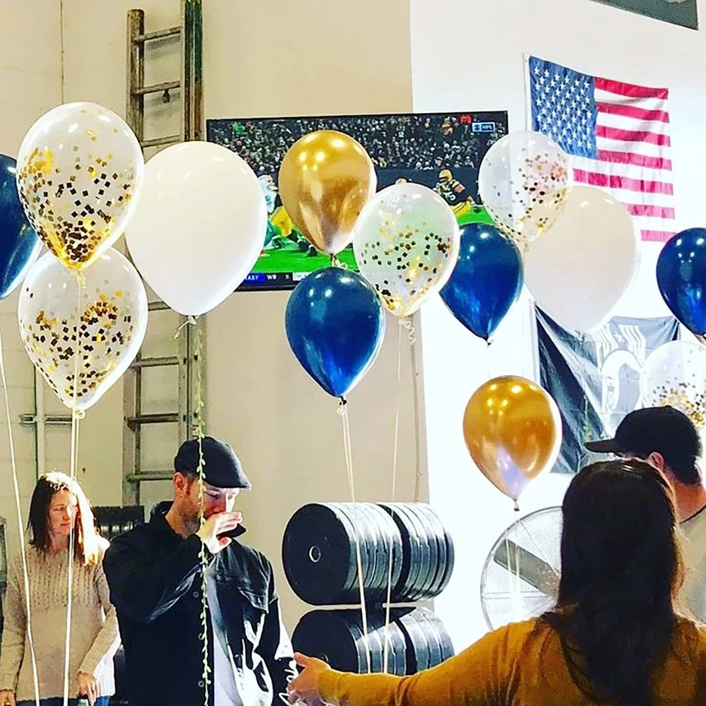 12-inch Blue Balloons Kit for Baby Showers with White Ribbons