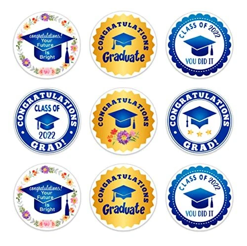 Return Policy Fast Delivery Trusted seller Graduations Label Stickers 1.5" Class of 2022 Graduation Gift Stickers Congrats Grad Graduation Party Favor Stickers Labels for Envelope Seals Candy High School College Party Favor Supplies Product Description SIZE: Graduation gift stickers each size measure 1.5",Round 2022 graduation stickers for envelopes seals. PACKAGE INCLUDES: Including 36pcs class of 2022 graduation gift tag stickers,it can be apply for college high school kindergarten perschool party favor supplies. HIGH QUALITY: The graduation present stickers made of vinyl,self-adhesive.non-toxic& no smell,thickly and durable. GOLD AND BLUE GRADUATION GIFT TAGS STICKER: These graduation gift decorations printed with the words ",congrats grad,class of 2022 you did it,congratulations your future is bright" MULTI-PURPOSE: Graduation labels sticker can widely use in party decoration,well decor graduation present, holiday packages,graduation boxes,gift bags,goodie bags, candy,graduation card envelopes seals,graduation cap stickers,announcements. Shipping Returns Payment Shipping Shipping is FREE to all addresses other than APO/PO boxes in the lower 48 states. All our stock ships from US-based warehouses. Shipped via USPS or UPS (depending on location and package weight) Unless stated otherwise, all orders will ship within 24-72 hours of your payment being processed. Check our feedback to see the great reviews of FAST shipping we offer. Returns Seller does not accept returns Payment We currently accept payment via eBay managed payments only. Once payment is cleared, we will dispatch your shipment within 1-3 business days. Please refer to the "Shipping" tab for more information regarding shipping speed to your destination.