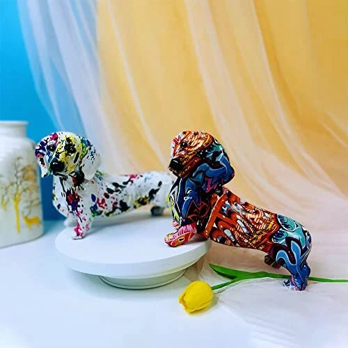 Return Policy Fast Delivery Trusted seller Graffiti Dachshund Dog Statue Sculpture Animal Art Figurine Home Decoration for Living Room Bedroom Book Shelf TV Cabinet Desktop Decor Table Centerpieces Ornaments (I2) Product Description 【 EXQUISITE CRAFTMANSHIP 】- The dog decor statue is designed with geometry, simply and abstract outline, add a strong artistic flavor to your room, exquisite and unique. 【 MORDERN SIMPLY DECOR 】- About the Dachshund culpture, perfect size make it easy to suit all kinds of furnitures, it's a good home decoration for living room, office desk, book shelf, wall mount floating shelf, TV cabinet, bar cabinet and so on. 【 DURABLE AND COLLECTABLE 】- The dog sculpture and figurine is made of high-quality resin, non-toxic, no smell, sturdy and durable, it's a precious work of art that can be collected for a long time. 【PERFECT GIFT】- The cute animal statue dog sculpture is a good gift for the lovers, husbands, wives, mothers, fathers, sons, daughters, collegue, animal lover, collector etc; suit for all various occasions including birthday, Valentine's Day, wedding anniversary, Mother's Day, Father's Day, Halloween, Thanksgiving, Christma, Back to School Day and so on. 【ABOUT US 】- 100% Satisfaction. Every home decor statue is hand-carved and hand-painted, if some of items has the slightest flaw on it, please forgive it. if you have some opinions about our items, you can contact us, we will give you a satisfied solution within 24 hours. Shipping Returns Payment Shipping Shipping is FREE to all addresses other than APO/PO boxes in the lower 48 states. All our stock ships from US-based warehouses. Shipped via USPS or UPS (depending on location and package weight) Unless stated otherwise, all orders will ship within 24-72 hours of your payment being processed. Check our feedback to see the great reviews of FAST shipping we offer. Returns Seller does not accept returns Payment We currently accept payment via eBay managed payments only. Once payment is cleared, we will dispatch your shipment within 1-3 business days. Please refer to the "Shipping" tab for more information regarding shipping speed to your destination.