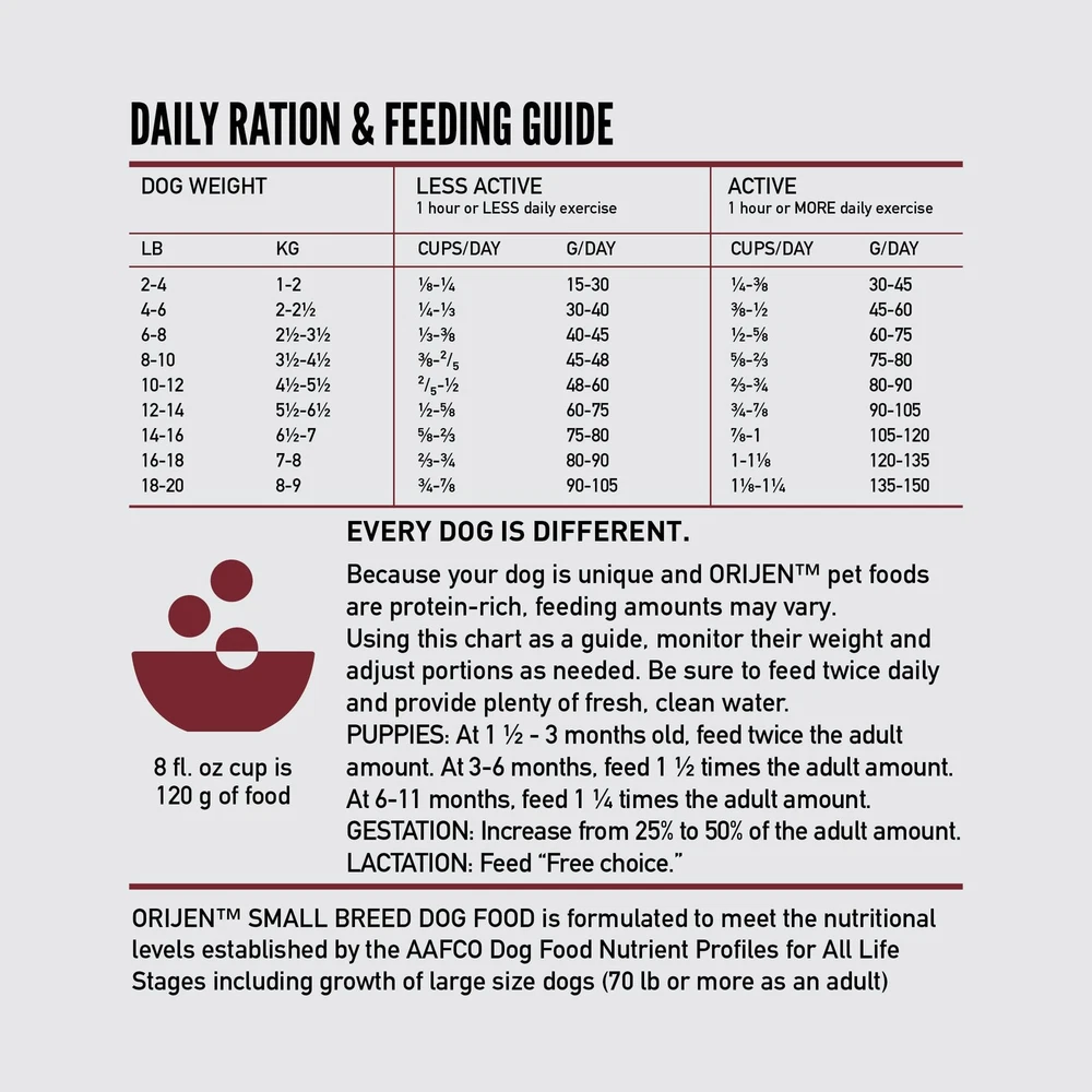 (1) 4 lb bag of Small Breed Grain Free* Dry Dog Food grain free* dog food for small dogs is tailored to meet the nutritional needs of your small dog with a unique kibble shape that's easier to eat Grain free* dog food containing 85 percent** animal ingredients, including WholePrey ingredients like nourishing organs to mimic what your dog's ancestors consumed in the wild First five ingredients are fresh or raw poultry and fish, so your dog can get a high protein dog food with the protein, vitamins and minerals they need Dry dog food kibble is made in the USA with quality ingredients from around the world; no soy, corn, tapioca or wheat ingredients are added in our kitchen