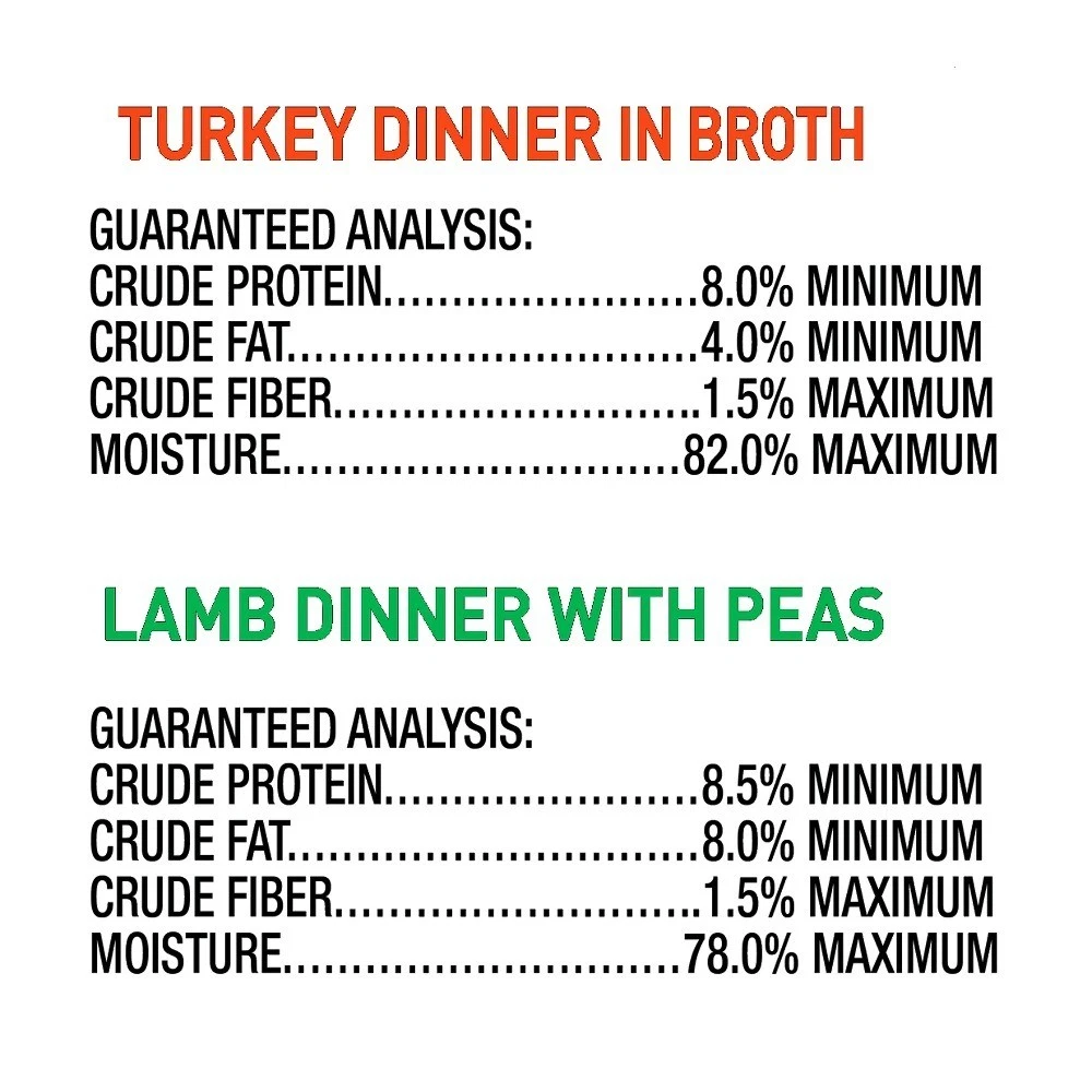 Your dog will be tasting a piece of the good life when you fill up their bowl with this Grain-Free Wet Dog Food Variety Pack. Moist, tender, and irresistibly delicious are just a few words your pup might use to describe this hearty meal if they could talk. This 12-pack includes six trays of Turkey Dinner in Broth and six trays of Lamb Dinner with Peas. For the best ingredients, pure and simple, pick up the Grain-Free Wet Dog Food Variety Pack today. At , we believe in one idea – the best nutrition for your pet starts with ingredients you can trust. Each of our super premium recipes are made with natural ingredients with added vitamins, minerals and other nutrients to your pet gets the nutrition they need. Its the way. Pure and Simple. Grain-Free Wet Dog Food Variety Pack, 3.5 oz Trays, 12 Count Includes 6 Turkey Dinner in Broth and 6 Lamb Dinner with Peas Moist and tender wet food for dogs in 3.5 oz trays No artificial colors The amount of food your dog requires will depend on activity, age, environment, and breed Feed at room temperature and refrigerate unused portions Always provide access to clean, fresh water