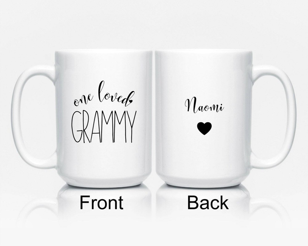 One Loved Grammy Mug Grammy Coffee Mug Grammy Gifts Thoughtful Gift From Product Details.. This high quality 11oz. ceramic white mug has a premium hard coat that provides crisp and vibrant color reproduction sure to last for years. Perfect for all hot & cold beverages. The highest quality printing possible is used. It will never fade no matter how many times you wash it. Material: 100% Ceramic. Print both sides. Dishwasher and Microwave Safe. High Gloss + Premium White Finish. Printed in the U.S.A. Personalized & Custom. We support personalized and custom mug to add custom, when placing an order, you can add notes to the "order note" in shipping address section. Also you can contact us directly via message. Shipping Info. Ready to ship in 1 to 2 business days, All products are made-to-order and proudly printed in the United States. Shipped by USPS and DHL, You will receive your order in 5-7 days. Replace & Refund. All products are defective during shipping broken, chipped will be replaced free of charge. You are not satisfied with the product, we will refund 100% money to you. If any other issues arise, please do not hesitate to message, we would be more than happy to assist you.