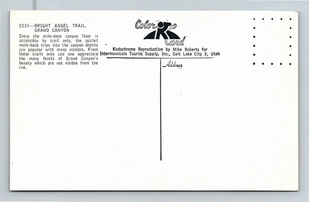 Grand Canyon, Bright Angel Trail, Mule-Back Horse Rider Vintage Arizona Postcard