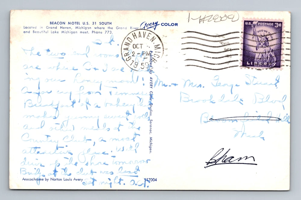Grand Haven MI-Michigan, Beacon Motel, U.S 31 South, Vintage Postcard