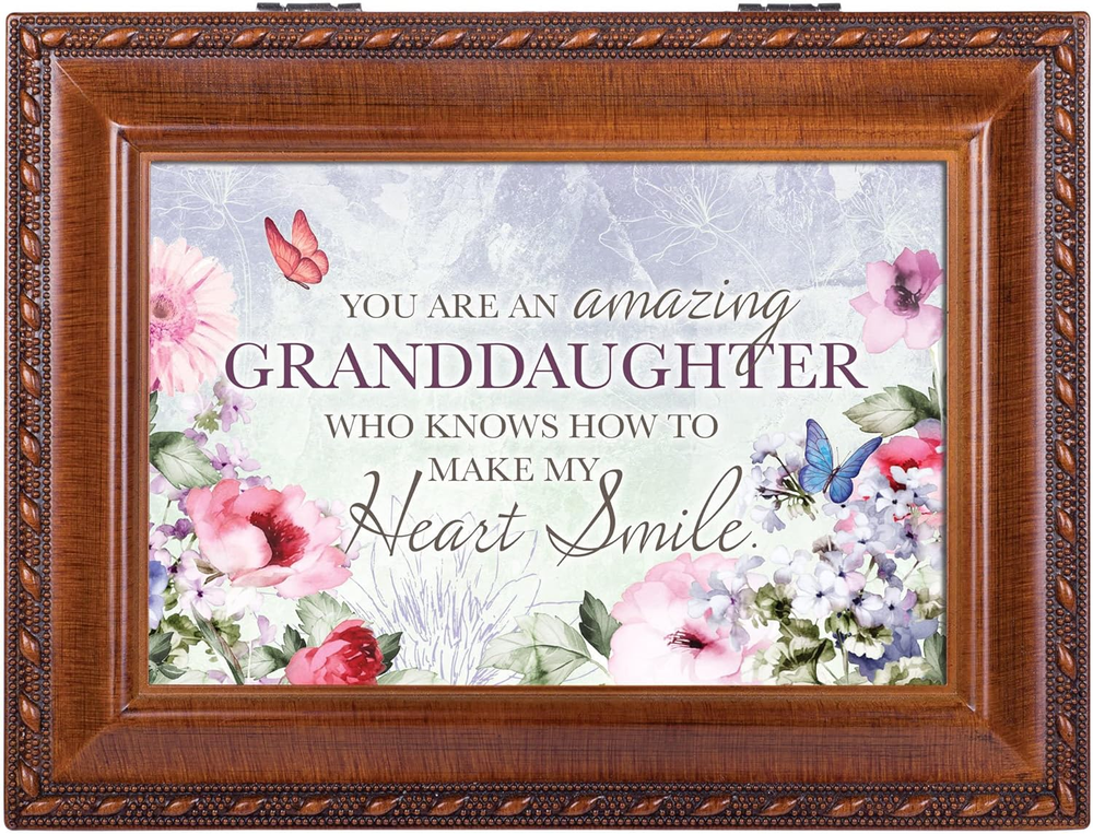 Granddaughter Make My Heart Smile Woodgrain Rope Trim Jewelry Music Box Plays Yo