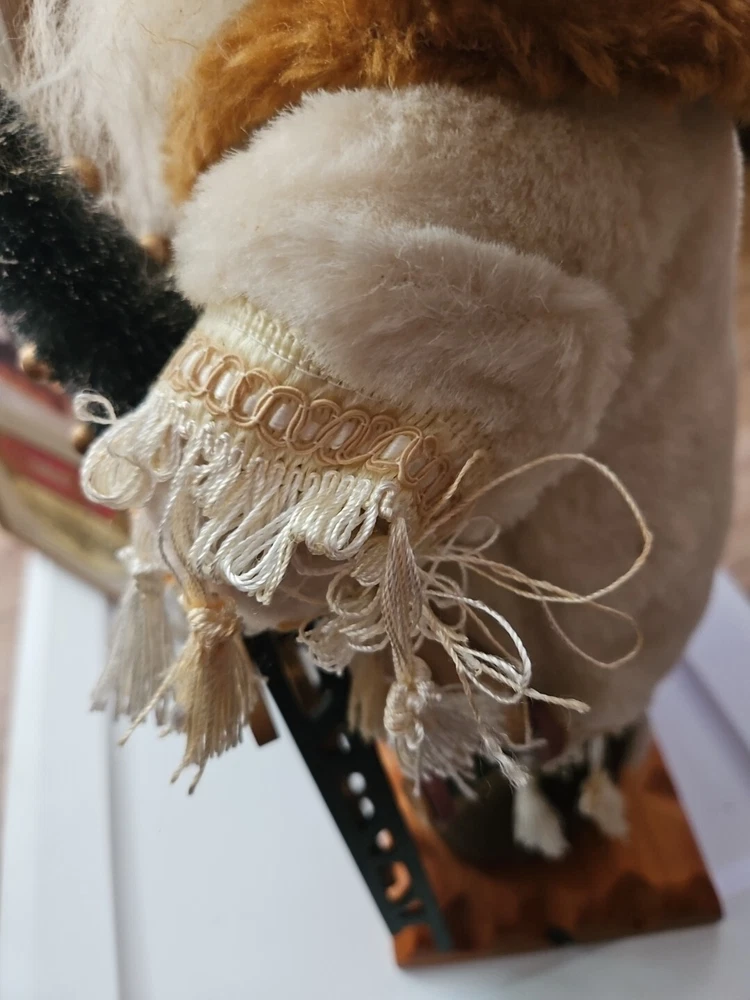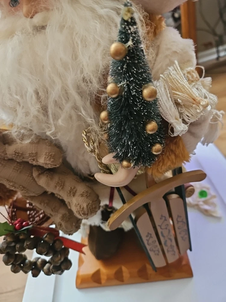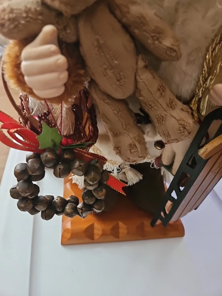 Has a few minor flaws as shown in pics. Bring home the magic of Christmas with this vintage collectible box from Grandeur Noel. The box features a 16-inch fabric Santa with a base, teddy, and sleigh, perfect for adding to your holiday decor. The intricate details and vibrant colors make this Santa a standout piece, sure to delight collectors and enthusiasts alike. Crafted from high-quality materials, this Santa figurine is durable and will last for years to come. The boxed packaging makes it easy to store or give as a gift. Add this charming piece to your collection or display it proudly on your shelf.