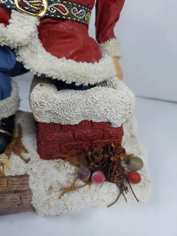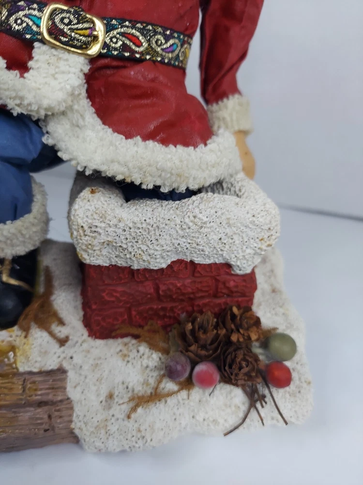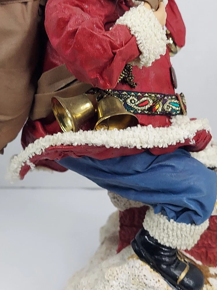 Grandeur Noel Christmas Fabric Mache Santa Claus 10” W Gifts Bells Down Chimney Please see the pictures for measurements and condition.