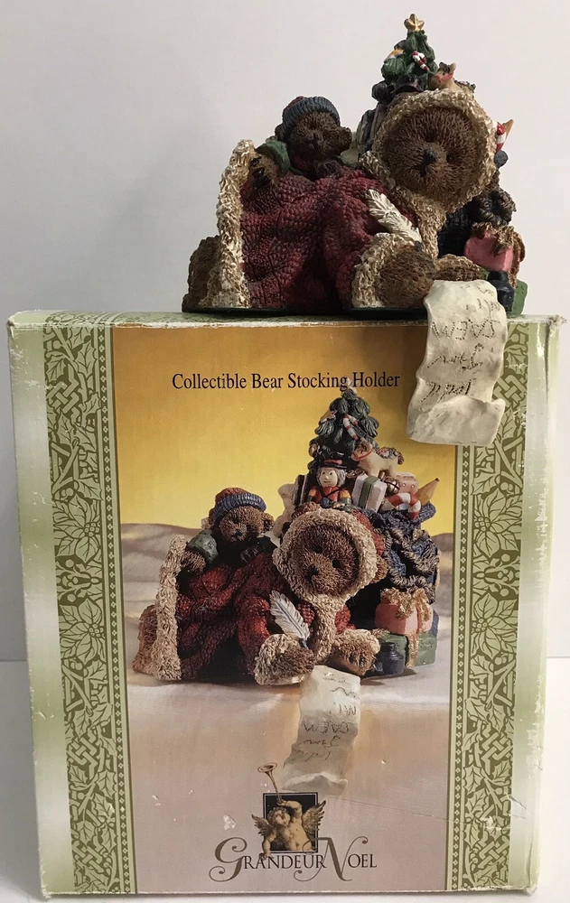 Grandeur Noel Collectible Bear Stocking Holder Christmas Tree Toys Hand Painted Nice condition. Box has some wear from storage. See pictures for details.