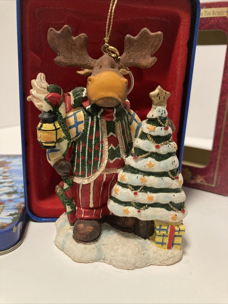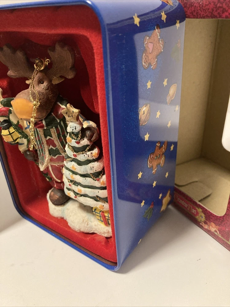 Grandeur Noel Moose Vintage Ornament w/ Box & Tin