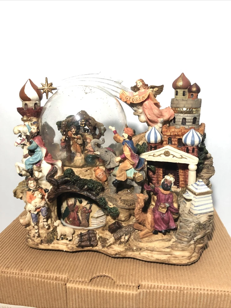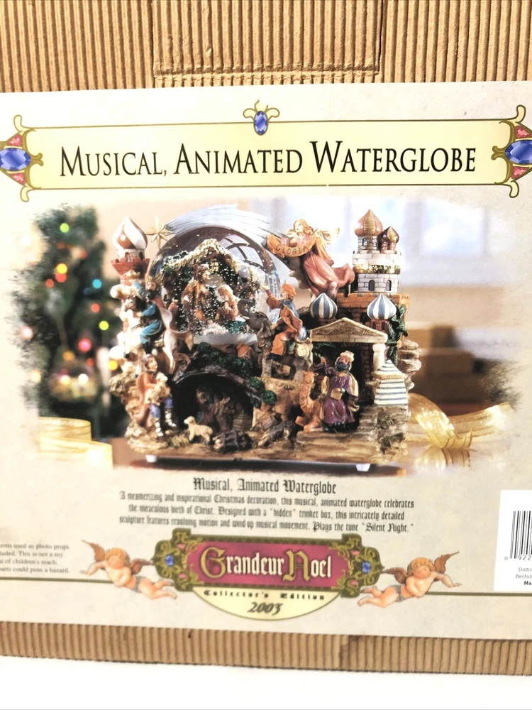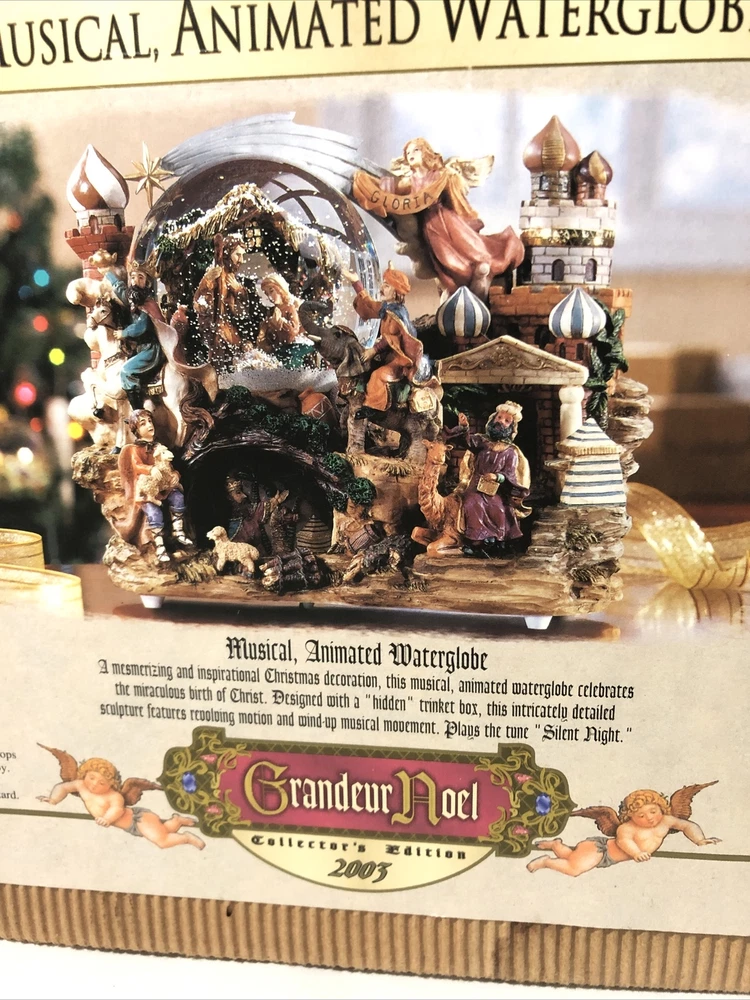 Piece is in great condition- water has been emptied Grandeur Noel Collector's 2003 Musical Animated Waterglobe Christmas Nativity. SKU 9200