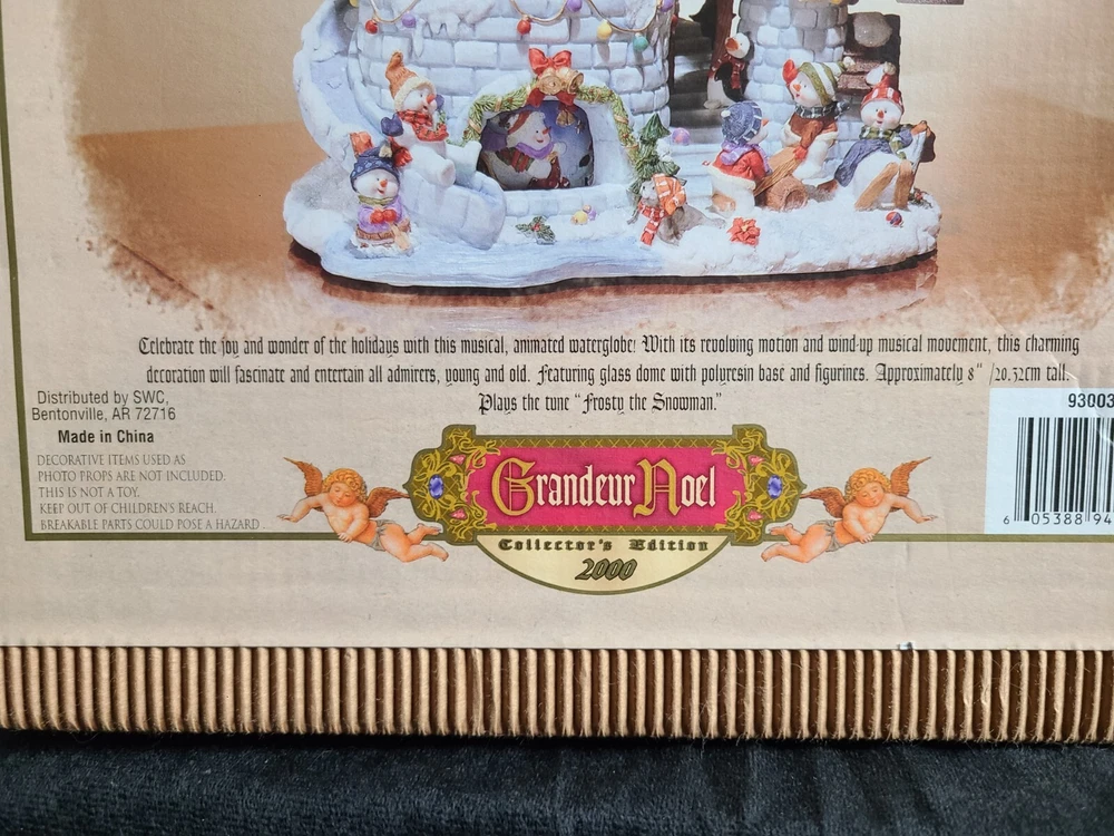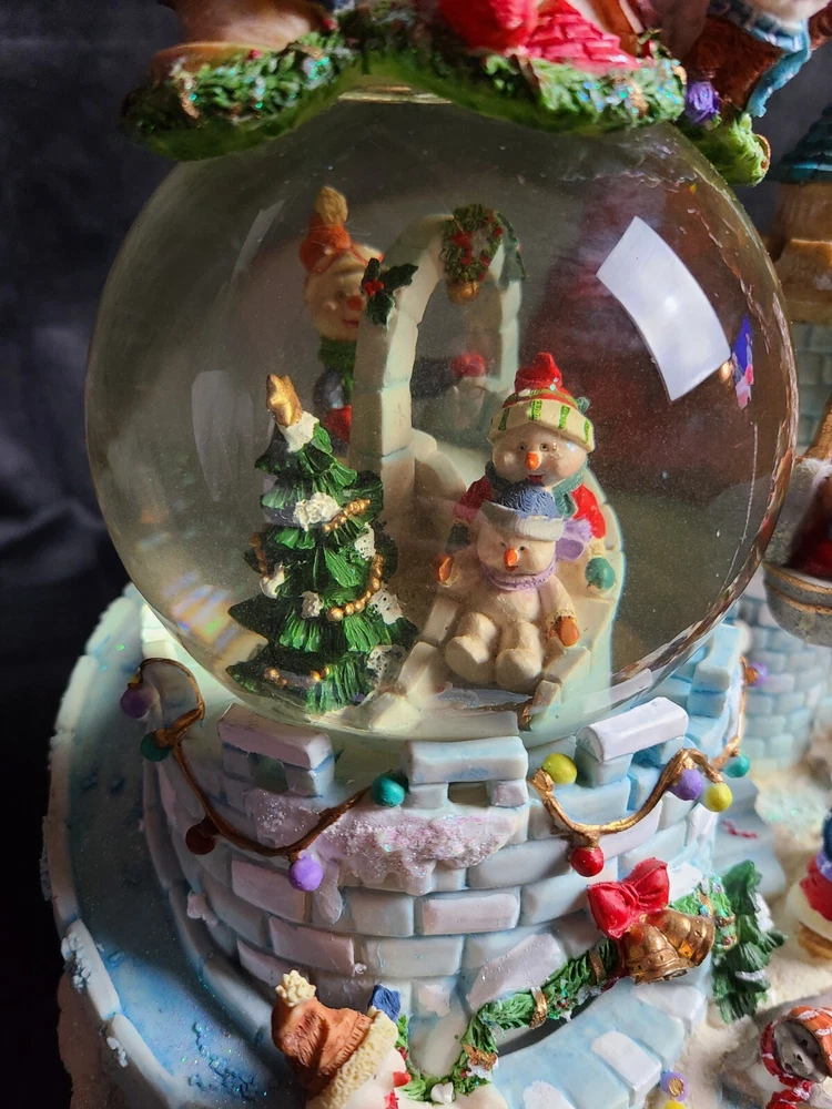 2000 Collector's edition waterglobe with revolving motion and wind-up music plays tune "Frosty the Snowman." Features glass dome and polyresin base. Water has small air bubble and slight cloud from age. Has original box. All items are packed with care to prevent breakage and shipped promptly. Purchases will not ship until paid in full. Unpaid items will be reported after 3 days without payment. Purchase of multiple items you will need to "Request total from seller" to get combined shipping invoice. Returns and Refunds will be for the ORIGINAL purchase price ONLY, and will NOT INCLUDE any shipping paid at time of purchase. Refund will be issued after return delivery of item. New unopened items will not be refunded if NOT returned in same unopened condition as sold. Thank you for choosing Treasure Schack, please kindly leave feedback after receiving item(s). International orders: Import duties, tax and charges are NOT INCLUDED in the item price or shipping charges. These charges are the buyer's responsibility and are normally collected by the delivering company. They are not additional shipping charges. U.S. and International government regulations are followed.