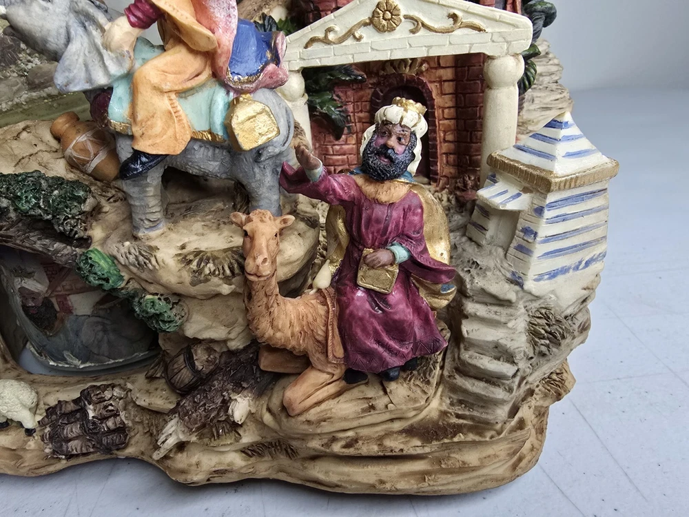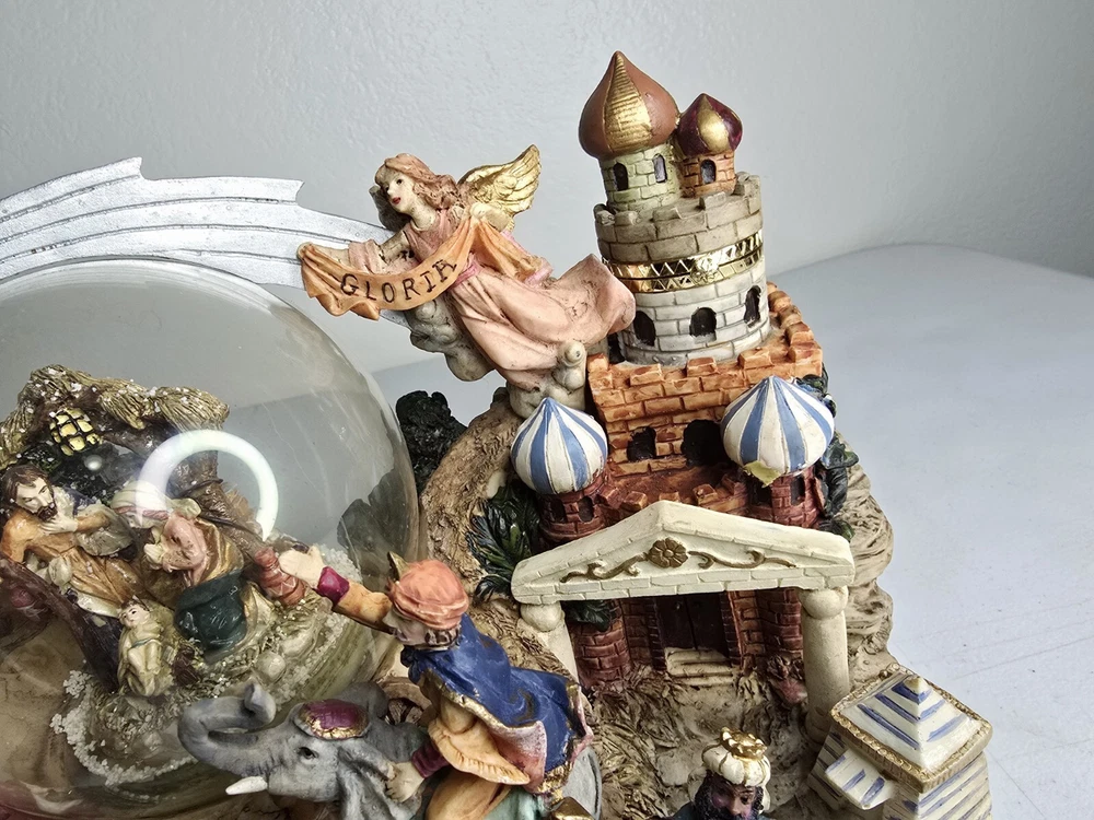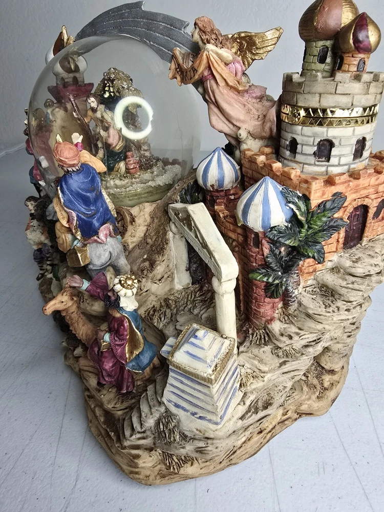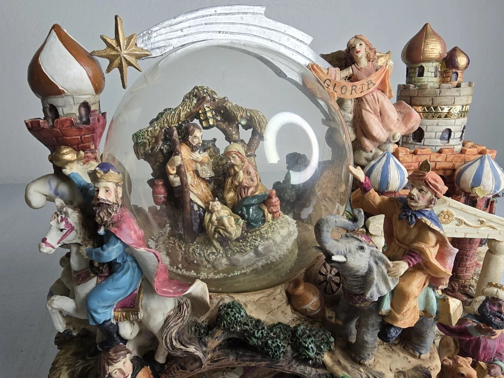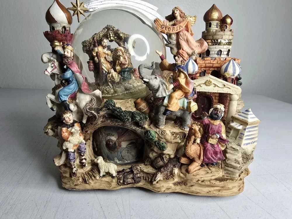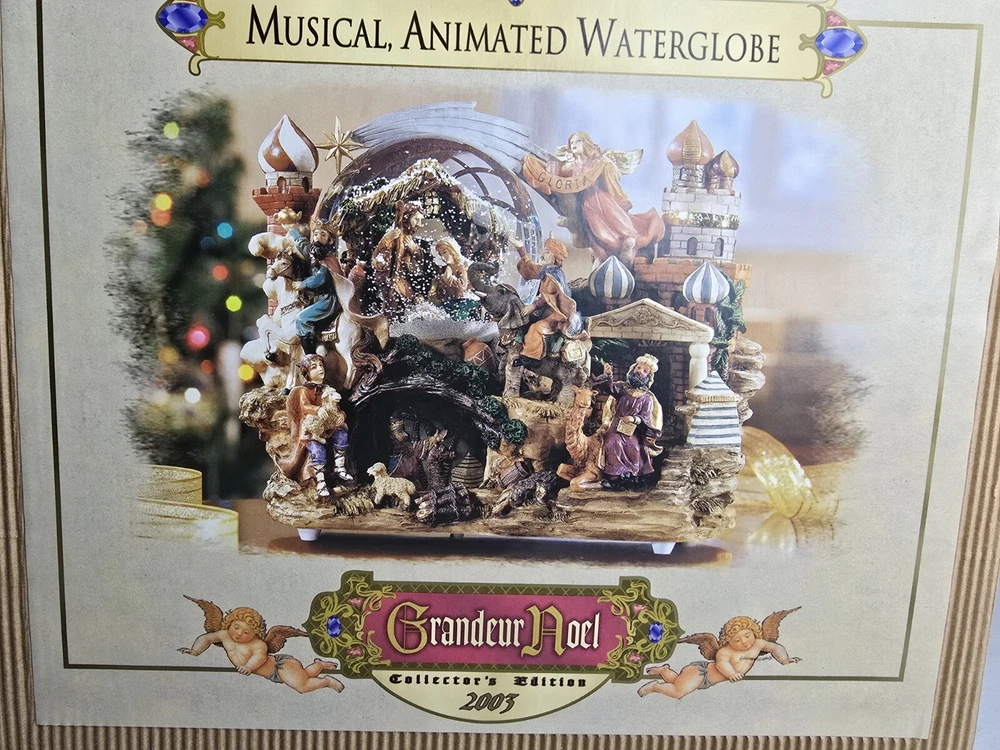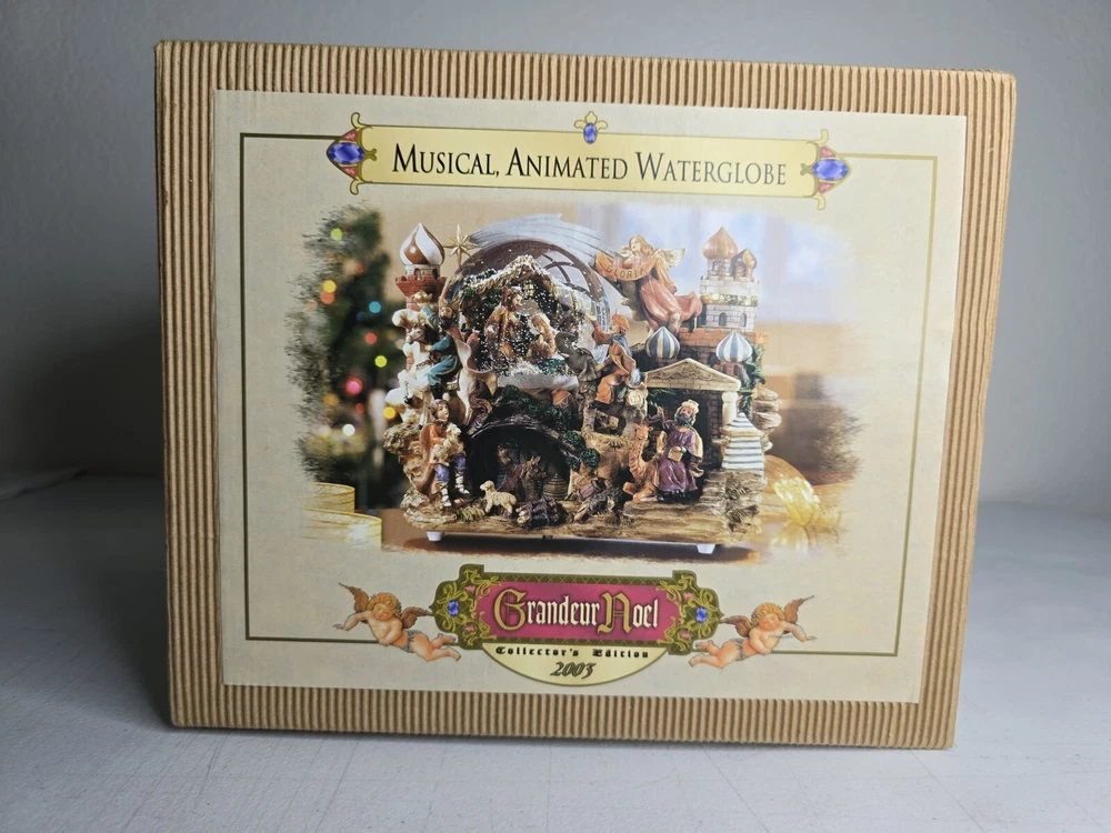 πβ¨ Step Back in Time with this Vintage Grandeur Noel Water Globe! β¨π Get ready to bring some nostalgia to your holiday decor with this Grandeur Noel Vintage 2003 Musical Animated Water Globe Nativity Scene ! Perfect for collectors and holiday enthusiasts, this unique piece is bound to become the centerpiece of your festive celebrations! π π Features that Shine Bright: π Musical Animation : Wind-up mechanism that plays enchanting holiday tunes. πΆ Stunning Details : Intricately designed nativity scene with the Holy Family, wise men, and shepherds, capturing the true essence of Christmas. π Collectible Item : Part of the illustrious Grandeur Noel 2003 Collector's Edition. π Beautiful Craftsmanship : Exquisite details, including a castle, shepherds, and angel Gloria with a banner. Truly a work of art! π¨ π Measurements: π Dimensions: Approximately 10β wide x 10β high x 8β deep to grace any mantel or table. π β¨ Why You'll Love It: β¨ Vintage Charm : The 2003 edition gives a nostalgic vibe that adds a classic touch to your holiday decor. Perfect Gift : Ideal for those who appreciate finely crafted holiday collectibles. π Engaging Animation : The wind-up feature animates the scene and adds a touch of magic to your holiday. π π¦ Condition Report: π¦ This item has had a bit of holiday adventure over the years and shows some wear: Water Leak : The globe has leaked, leaving dry watermarks at the bottom and some rust on the screws. Itβs unclear if this can be refilled or how the leak occurred. π§ Attempts at Access : The white bottom lid was attempted to be removed but is glued on tightly, so it remains in place. π«βοΈ Guarantees : The musical carousel still works like a charm when wound, playing lovely tunes to lift your holiday spirit! πΆ πΈ A Closer Look: πΈ Beautifully detailed nativity scene under a brilliantly arched star. Wise men, shepherds, and animals intricately crafted and painted. Fantastically detailed castles and architectural elements. Baby Jesus, Mary, and Joseph crafted with loving detail within the globe. Angel with a "Gloria" banner, adding heavenly elegance. π π Perfect For... π Holiday decor aficionados looking to make a statement with a classic piece. Vintage item collectors who appreciate the historical charm. Individuals seeking a unique holiday gift with a nostalgic twist. Anyone who loves animated, musical holiday pieces that tell a story! Don't miss out on owning this unique piece of holiday history ! This Grandeur Noel water globe is sure to bring joy and festive cheer to your home. Act fastβbefore it winds up in someone else's Christmas wonderland! βοΈπ Note: Due to its age and vintage status, this item is sold as-is. Please consider the condition details mentioned. ππ Happy Holidays & Merry Collecting! ππ