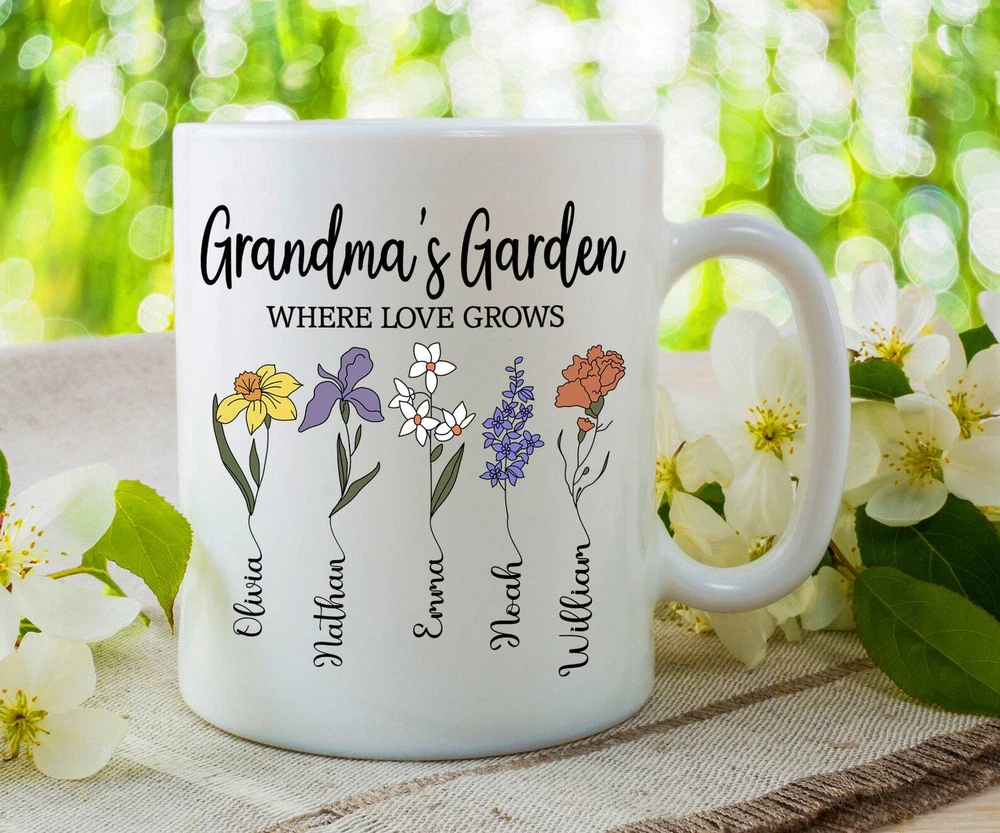 Grandma Garden Mug Mother Day Mug Custom Mom Mug Mothers Birthday Gifts Gift For Grandma Mom Mug Mom Daughter Gift Mother Day Gift Product Details.. This high quality 11oz. ceramic white mug has a premium hard coat that provides crisp and vibrant color reproduction sure to last for years. Perfect for all hot & cold beverages. The highest quality printing possible is used. It will never fade no matter how many times you wash it. Material: 100% Ceramic. Print both sides. Dishwasher and Microwave Safe. High Gloss + Premium White Finish. Printed in the U.S.A. Personalized & Custom. We support personalized and custom mug to add custom, when placing an order, you can add notes to the "order note" in shipping address section. Also you can contact us directly via message. Shipping Info. Ready to ship in 1 to 2 business days, All products are made-to-order and proudly printed in the United States. Shipped by USPS and DHL, You will receive your order in 5-7 days. Replace & Refund. All products are defective during shipping broken, chipped will be replaced free of charge. You are not satisfied with the product, we will refund 100% money to you. If any other issues arise, please do not hesitate to message, we would be more than happy to assist you.