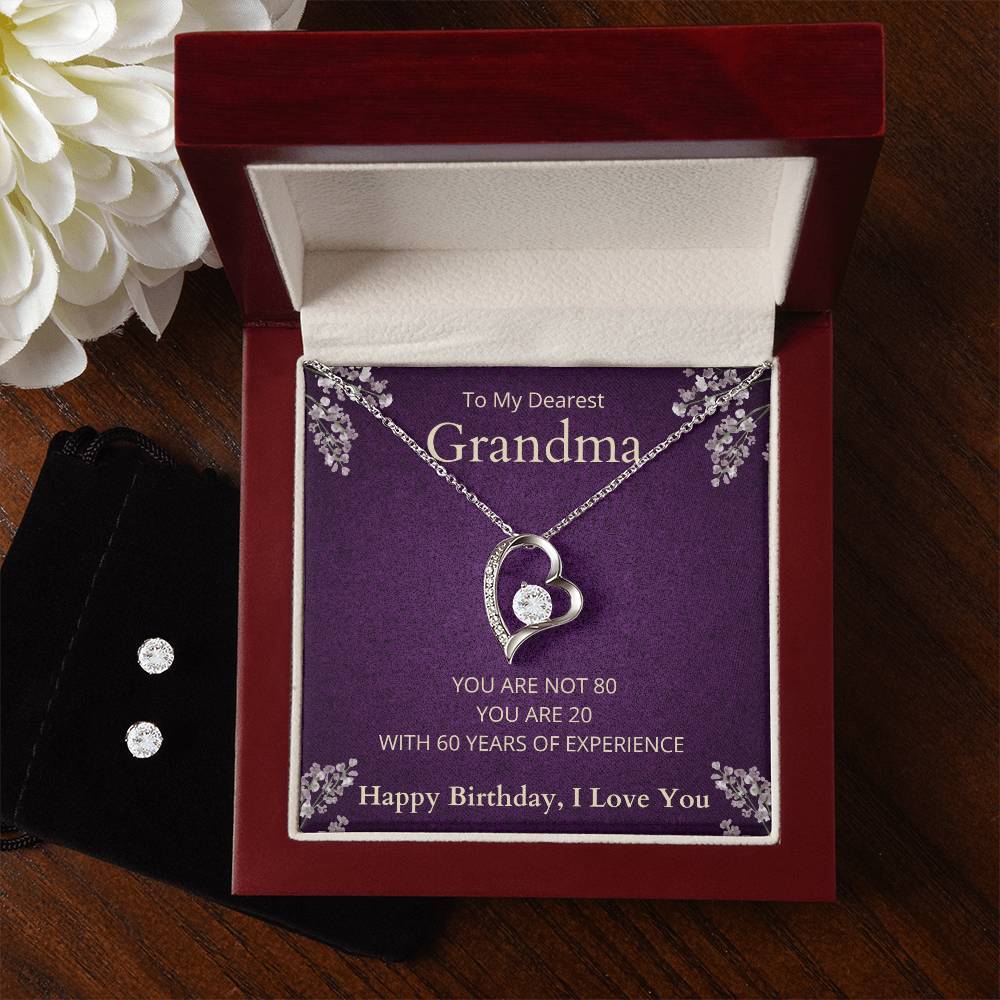 Give your loved one a gift that will make their heart swell! The Forever Love Necklace and Cubic Zirconia Earring Set is sure to do the trick. This necklace and earring pairing provides dazzling sparkle when worn together or separately, and is perfect for any occasion! Do not miss out on this special offering! Necklace Specifications 14k white gold finish 6.5mm round cut cubic zirconia crystal 0.8" (2.2cm) / 0.7" (1.8cm) Adjustable cable chain: 16" - 22" Lobster clasp attachment Earring Specifications 14k white gold finish 6mm round cut cubic zirconia crystals Post style backing Your piece is lovingly packaged in a complimentary soft touch box for easy gifting. Elevate your presentation by upgrading to the mahogany style luxury box, which features a brilliant LED spotlight.