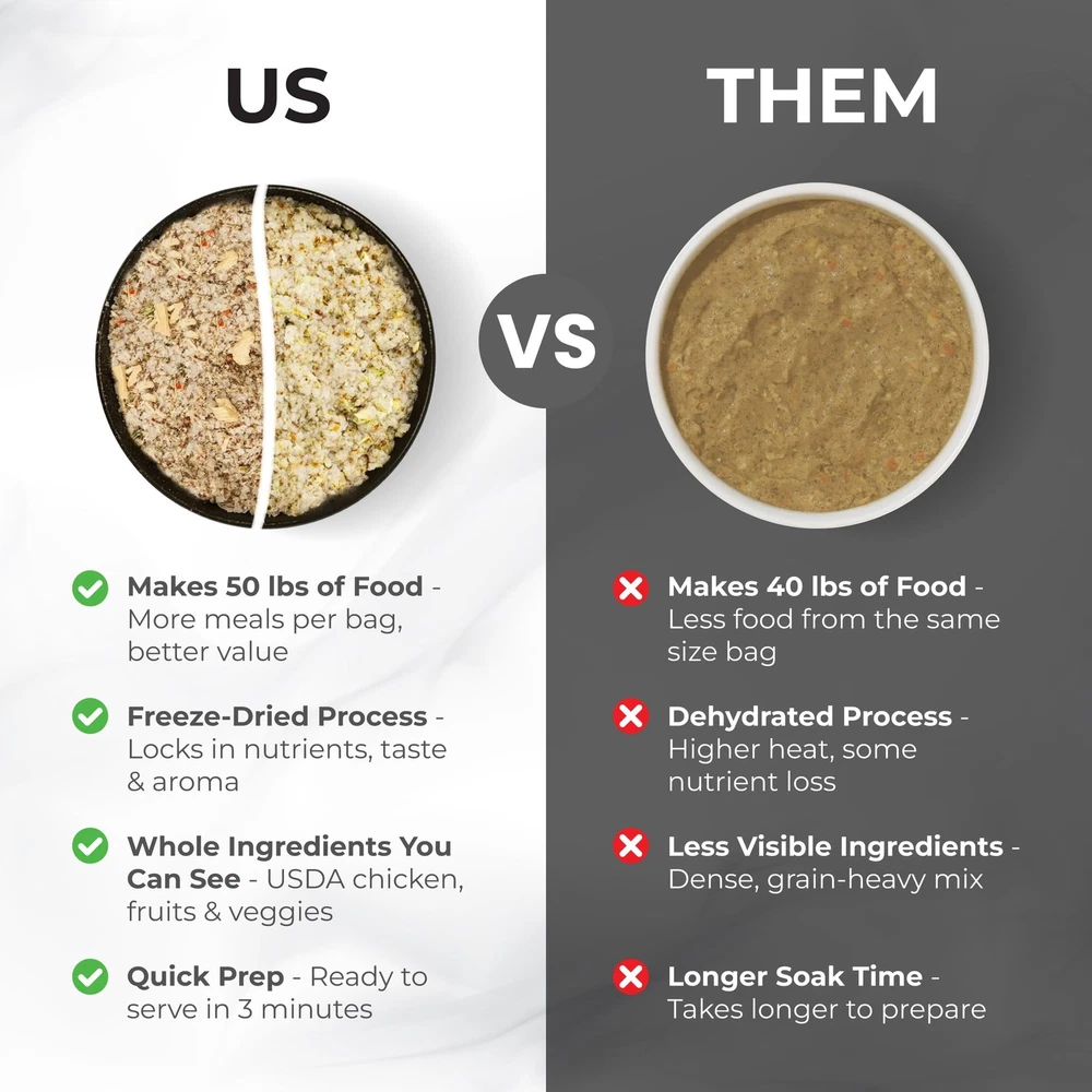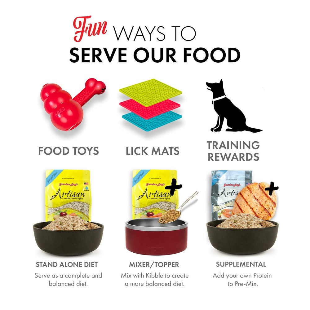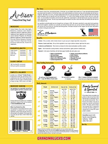 Grandma Lucy's Artisan Dog Food, Grain Free and 10 Pound (Pack of 1) Description Tasty pieces of fresh chicken to build and maintain lean muscle! The chicken we use is a high-quality, highly digestible protein without any added hormones, steroids or antibiotics. Our recipes consist of only natural, whole food ingredients and we never use meat meals, chicken meals, or by-products. This ensures that your pet is getting premium nutrition in every bite!Preparation is easy: simply add warm water, stir, and serve after 3-5 minutes. Ideally suited for pets with food allergies or sensitivities. Formulated to meet the nutritional levels established by the AAFCO Dog Food Nutrient Profiles for All Life Stages. Made in USA.Our ingredients and philosophy have not changed since we began in 1999. We remain committed to using whole food ingredients from trusted suppliers. Grandma Lucy’s provides you with pet food and treats you can trust and feel comfortable feeding to your pets because we are just like you, concerned and loving parents. Features: QUALITY YOU CAN TRUST - A nutritionally balanced blend of highest quality ingredients, freeze-dried chicken, fruits and vegetables LIMITED INGREDIENTS - This all natural, grain-free recipe contains no fillers, by products, GMO’s or preservatives to keep your dog happy and healthy ALL LIFE STAGES - Grandma Lucy’s Artisan dog food is formulated to provide all the beneficial nutrients your dog needs no matter their size or age GREAT TASTE - We don’t compromise on taste. Freeze-drying uses low levels of heat to retain taste, texture and aroma that your pup craves JUST ADD WATER - For each cup of dog food add 1-2 cups of warm water. Stir well and let stand for 3-5 minutes Product Details: Handling We will ship all orders within 1 business day of payment. Delivery We Do Not Ship Outside of the Continental US. Return Policy All items qualify for returns within 30 days of receipt. Buyer is responsible for return shipping on any item that is not damaged. Feedback We take our reputation seriously, we buy and sell online, so we understand the value of trust. If you are unsatisfied with your order, please contact us and we will work with you to resolve it to your satisfaction.