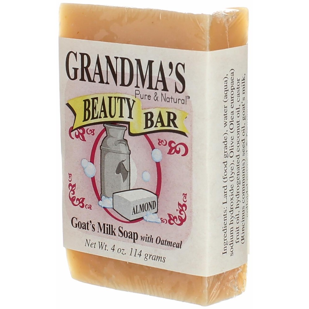 Product Description All natural gentle exfoliation - the combination of almond essential oils and oatmeal provides an excellent lather and thoroughly cleanses the skin and facilitates exfoliation Feel amazing - goat's milk naturally moisturizes the skin The perfect bar of soap - grandma’s pure & natural soaps are made through traditional, hand crafted methods to best preserve the quality and effectiveness of our all-natural ingredients Ingredients Saponified Oils of Lard, Olive & Castor, Goat Milk, Oatmeal & Essential Oils. Product Description All natural gentle exfoliation - the combination of almond essential oils and oatmeal provides an excellent lather and thoroughly cleanses the skin and facilitates exfoliation Feel amazing - goat's milk naturally moisturizes the skin The perfect bar of soap - grandma‚Äôs pure & natural soaps are made through traditional, hand crafted methods to best preserve the quality and effectiveness of our all-natural ingredients Ingredients Saponified Oils of Lard, Olive & Castor, Goat Milk, Oatmeal & Essential Oils. Disclaimer The product descriptions and instructions provided by Vitabox are for informational purposes only and are qualified in their entirety by the information available from manufacturers of the products. You should carefully read all product packaging, and contact the manufacturer with any questions before using a product. While we endeavor to ensure that product descriptions are current, manufacturers sometimes change their products. We are not liable for inaccuracies or misstatements about products. We do not provide medical advice or recommendations. You should not use the information provided by Vitabox for diagnosing or treating a health problem or disease. If you have or suspect that you have a medical problem, immediately contact your health care provider. Information and statements regarding dietary supplements have not been evaluated by the Food and Drug Administration or any other government agency and are not intended to diagnose, treat, cure, or prevent any disease.