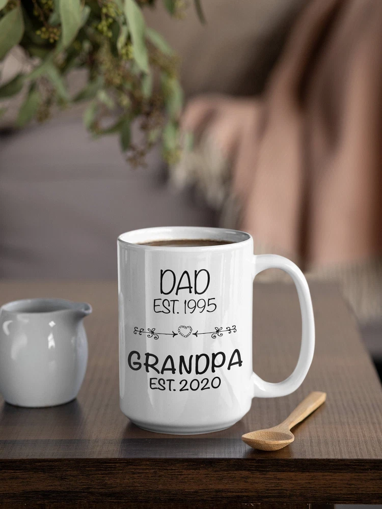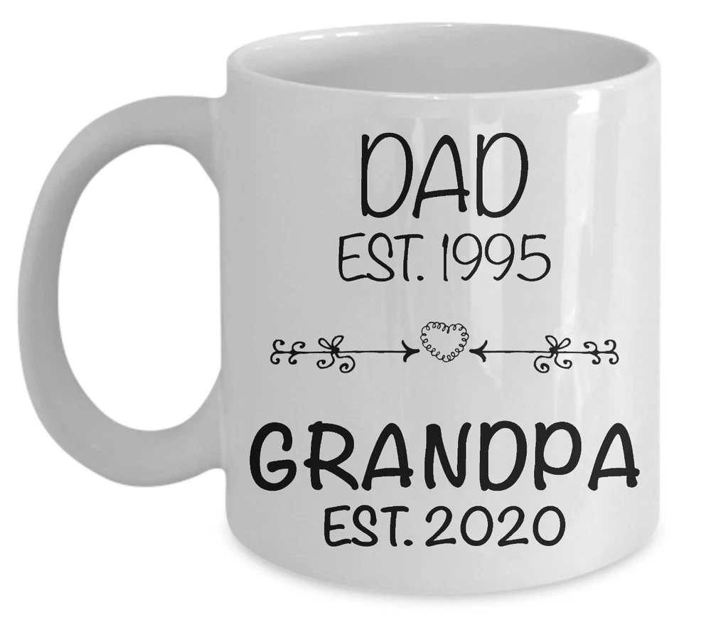 Grandpa Est 2020 Pregnancy Announcement Grandparents Mug Pregnancy Reveal Mug Product Details.. This high quality 11oz. ceramic white mug has a premium hard coat that provides crisp and vibrant color reproduction sure to last for years. Perfect for all hot & cold beverages. The highest quality printing possible is used. It will never fade no matter how many times you wash it. Material: 100% Ceramic. Print both sides. Dishwasher and Microwave Safe. High Gloss + Premium White Finish. Printed in the U.S.A. Personalized & Custom. We support personalized and custom mug to add custom, when placing an order, you can add notes to the "order note" in shipping address section. Also you can contact us directly via message. Shipping Info. Ready to ship in 1 to 2 business days, All products are made-to-order and proudly printed in the United States. Shipped by USPS and DHL, You will receive your order in 5-7 days. Replace & Refund. All products are defective during shipping broken, chipped will be replaced free of charge. You are not satisfied with the product, we will refund 100% money to you. If any other issues arise, please do not hesitate to message, we would be more than happy to assist you.