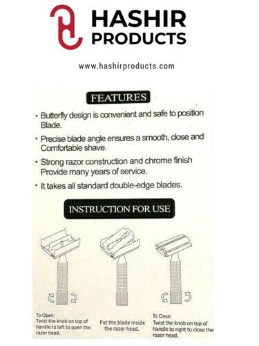 High Quality Grandpa's Old Fashioned Safety Razor - Heavy Duty Re-loadable Butterfly Style w/20 PCS SuperMax Platinum Double Edge Razor Blades Heavy duty Professional c opper alloy body and chrome electroplated Single blade for superior shaving and helps to minimize the chance of ingrown hairs Butterfly style opening easy mechanism works and functions for quick blade change Twist the bottom of the handle to open the razor head, carefully insert a new blade and twist the bottom until the head closes completely secure Razor Handle size is 3.5" 20 PCS SuperMax Platinum brand Double Edge Razor Blades You can use any other brands of Double Edge blades Great for Personal Use, Hair Salons and Barbershops HARD TO FIND PRODUCT - EASY TO USE AND TRAVEL WITH AS WELL We want you to know that we try to offer the lowest prices for all of our products and we adore each and every of our customers and will do whatever it takes to make you happy because if you’re happy we’re happy. We hope you’ll come back for more quality products that we offer at our EBAY STORE. Your satisfaction is our top #1 priority – nothing is more important. PLEASE CHECK OUT OUR EBAY STORE FOR GREAT ITEMS AND DEALS EVERYDAY If you have any questions please contact us via email - 24 hours a day View more great items