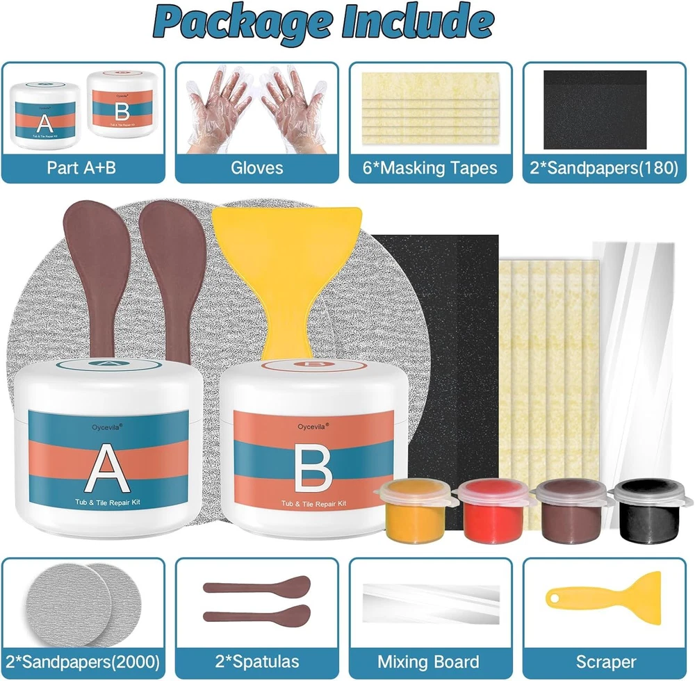 Free eBay listing template designed by dewiso.com Granite Repair Kit & Quartz Countertop Chip Repair Kit 3.7 OZ- (Color Match) Marble Repair Kit with Super Adhesion for Granite Countertops, Marble, Quartz Countertops, Acrylic Bathtub Repair Etc FREE AND FAST SHIPPING! PREMIUM GRANITE REPAIR KIT; Our new and improved bathtub repair kit has the superpower of restoring your cracked and worn-out bath tub. Repair every chip, scratch, and dents on your pristine-white bathtub with our tub and shower repair kit. Use our acrylic tub repair kit to restore cracked ceramic, fiberglass, and porcelain shower sink. Wide Application: Our granite repair kit is highly adhesive and requires just a few simple steps. With our professional-quality quartz countertop repair kit, you can quickly and permanently repair edge chips, cracks, dents, deep scratches and nicks on granite, marble, travertine, Corian and other natural stone. Our tile repair kit are perfect for repairing countertops, sinks, bathtubs, toilets and more. MARBLE REPAIR KIT (Color Match);Kit provides professional epoxy resin color tint to match your needs, Support brown, gray, white, beige, black, cream, yellow dark coffee, light coffee and more. COMPLETE KIT; The Granite Repair Kit include all the Tools you need, solve your worries. Use our bath tub repair kit porcelain to treat and restore tiles, bathtubs, and even porcelain countertop. Our porcelain repair kit contains high-quality bath tub repair kit refinishing agent, which is easy to apply, dries fast. Restore your bathroom's former glory using our tub and tile refinishing kit. CUSTOMER SERVICE; Please identify Oycevila brand Granite Repair Kit, guaranteed quality. If you're not satisfied with our Bathtub Repair Kit, we will offer premium customer service for you! Feel free to ORDER NOW! › Product We offer a 30-Day Return Policy on items which you are not completely satisfied with. You have the option for a full-refund or an exchange of the item. No returns are available on items shipped outside of the US . Shipping We offer Free Shipping to the US and ship within 2 business days of payment, usually sooner. We use UPS express shipping. That's why your products are usually delivered within 3 days . Contact We try our very best to make sure every customer is completely satisfied. If there's a problem , message us! We're happy to help. 24/7 live chat available.