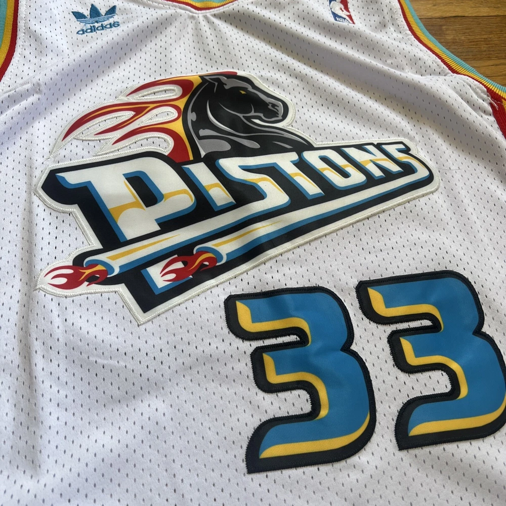 Product: Jersey Color: White Sport: Basketball Team: Detroit Pistons Size: L Player: Grant Hill Brand: Mitchell & Ness