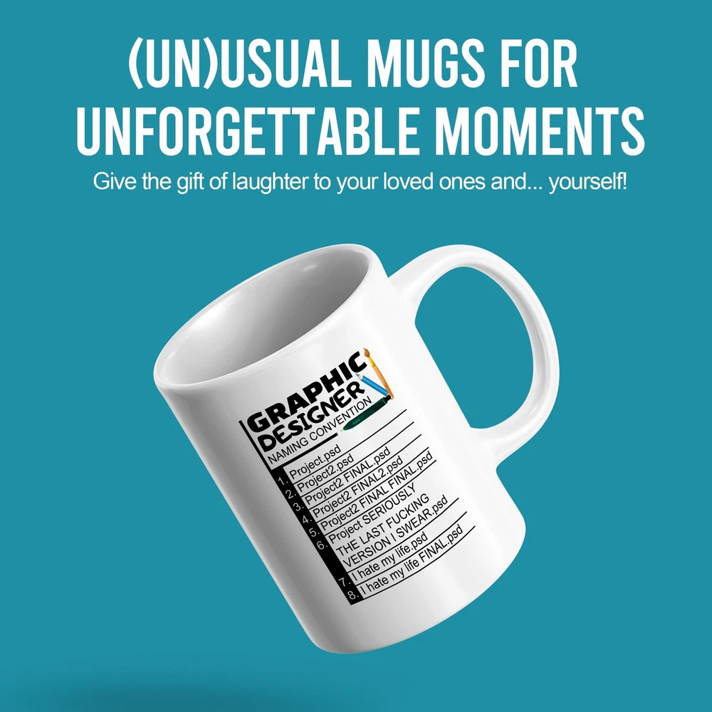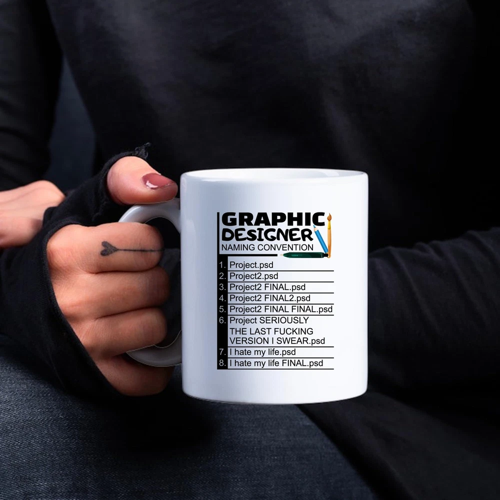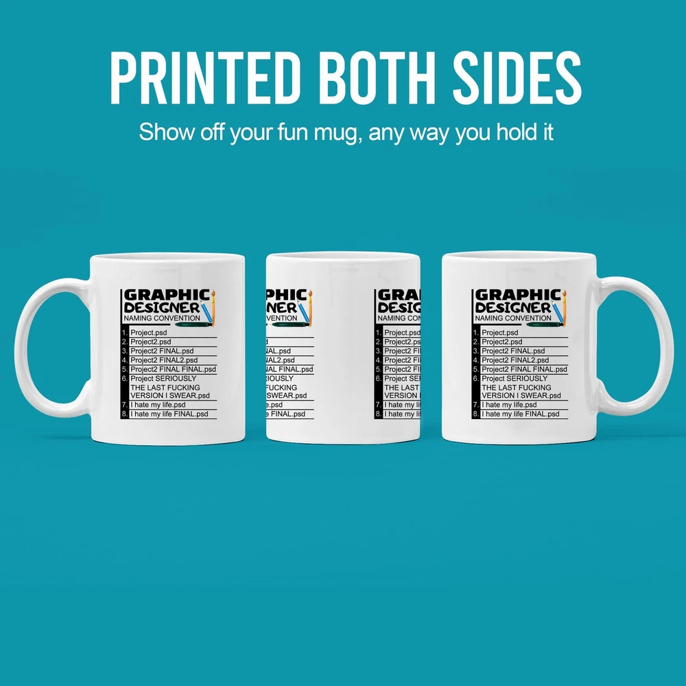 Start your day with your every morning brewed coffee, tea or any favorite drinks in this novelty mug. This unique mug can be used at school, libraries, reading rooms, workplaces, home. This high quality 11oz. ceramic white mug has a premium hard coat that provides crisp and vibrant color reproduction sure to last for years. Perfect for all hot and cold beverages. THERE'S ALWAYS ONE MORE 'FINAL' VERSION TO GO: Are you a graphic designer who knows the pain of endless edits and file versions? Do you find yourself constantly renaming your files like 'final final' or 'really final this time'? Then this mug is for you! A perfect gift for artists who know all too well the struggle of editing and naming their files until the project is just right. So, let everyone know that when it comes to naming conventions, you're the king/queen of the endless iterations! PREMIUM COFFEE MUG: This high-quality ceramic mug has a premium hard coat that provides crisp and vibrant color reproduction sure to last for years. Printed on both sides for either left or right-handed person so the awesome message and art will be visible. High-gloss and has a premium finish that can make you enjoy your drink more. Can also be used as pen holders on your office work table, planter for your kitchen herb, jewelry holder, or serving your favorite dessert. RELATABLE HUMOROUS QUOTE: Why settle for a boring old mug when you can have this one-of-a-kind drinkware on your dining, kitchen, or work table? Bring a smile to your loved ones' faces with this hilarious mug. Featuring a witty and relatable quote, this mug is sure to brighten anyone's day. Whether you're enjoying your morning coffee or taking a well-deserved break at work, this mug is the perfect pick-me-up. A conversation starter, it's also a surefire way to lift anyone's mood. HILARIOUS AND QUIRKY GIFT: It's not just the functional aspects that make this mug stand out. Its humorous design is what makes it a truly special and memorable gift. Whether it's to celebrate birthdays, anniversaries, graduation, holidays, retirement, Christmas, or any special milestone that occurs in life, this mug is sure to bring a smile to their face and some laughter to their day. The perfect present for anyone who loves a good laugh! DISHWASHER AND MICROWAVE SAFE: These fantastic drinking mugs can go straight in the dishwasher, all day every day, meaning it can save you time, and be more hygienic. Perfect for your favorite hot or cold beverages. Easily reheat that coffee or tea you forgot to drink right away because it is microwave safe. Saves you time, is very convenient, and is perfect for your busy lifestyle.