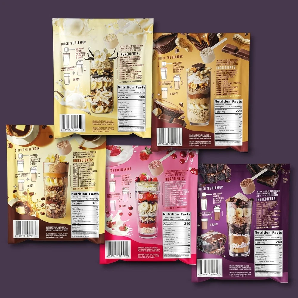 FlavCity Grass Fed Whey Protein Powder - Variety Pack - 25g Protein & 10g Collagen - 5 Single Serve Packets - Made with Organic Reishi & Cordyceps - Gluten Free & No Added Sugars Flavor 5 Single Serve Variety Pack Unit Count 9.13 Ounce Number of Items 5 Item dimensions L x W x H 5 x 3 x 6 inches About this item Try All Five - These creamy, nutrient-dense protein powders are designed to simplify your smoothie-making process. With five different flavors, you can use each single-serve packet to find your favorite mix before committing to a full bag. Simply scoop, shake and sip — no blending or extra add-ins required. 25g Protein & 10g Collagen - These grass fed whey protein powders combine non-GMO, minimally processed collagen, amino acids and undenatured whey protein. Meanwhile, organic Reishi and Cordyceps mushrooms help promote healthy focus and cognition. Functional Nutrition for Busy Lifestyles - We crafted these whey protein powders for men and women who want to streamline post-workout recovery, meal prep and on-the-go fueling. Each all-in-one formula is ideal for athletes, professionals and those who want to support their nutritional goals with whole-food ingredients. Just One Scoop - Add one scoop of this grass fed protein powder to 12 oz of your preferred milk, shake for 20 seconds and enjoy. Our formulas undergo stringent quality control and include thoroughly researched ingredients, so if it's "Bobby Approved" you know you're in good hands. I'd Scoop That - Since 2012, Bobby Parrish has helped people understand exactly what they're putting in their bodies so they can thrive. Now, with a following of more than 12 million community members, he's dedicated to creating protein smoothies derived from delicious whole foods and designed to help enhance your health journey. Product details Product Dimensions : 5 x 3 x 6 inches; 10.23 ounces Date First Available : November 8, 2024 Manufacturer : FlavCity Important information Legal Disclaimer Statements regarding dietary supplements have not been evaluated by the FDA and are not intended to diagnose, treat, cure, or prevent any disease or health condition. Product Description