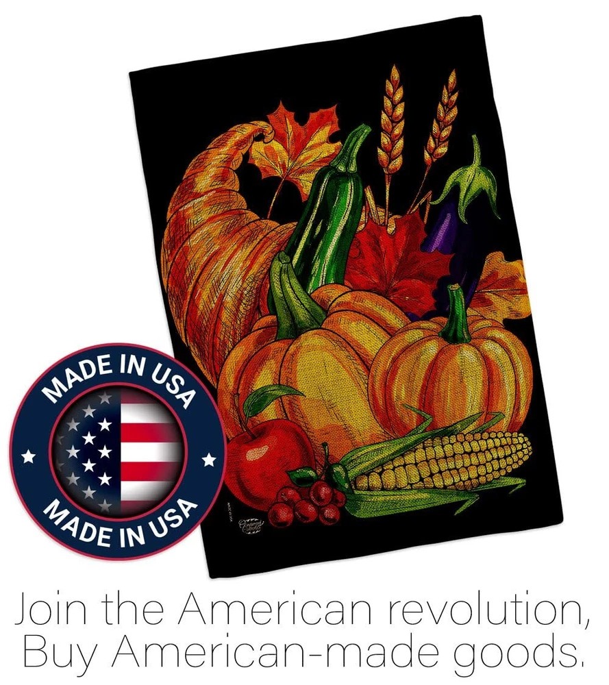 Thanksgiving Beautiful Mini Garden Flag with Garden Banner Pole Stand - Complete Set with Garden Pole - 16" x 40" Power Coated Metal Flag StandOrnament Collection have variety of Garden Flag Set for all occasions. Uniquely design for hanging indoor or outdoor use. We are committed to offering you exceptional values. Our customers enjoy displaying our Garden Flag Set for longer periods. Specification: Theme: Thanksgiving Size: Garden Flag Set 13" x 18.5" Size: Metal Garden Pole Print: Double-Sided Readable: Readable Both Sides Material: Weather Resistant Double Burlap Stitching: Double Stitched Display: Vertical Hang Type: Sleeve Artist: © Ava Storey Special Features: Origin: Made In USAPackage Include: 1 pc x Mini Garden Flag 13" x 18.5" 1 pc x Metal Yard Banner HardwareFor more than a decade, we’ve been dedicated to manufacturing flags with no comparison in quality and beautiful designs. Our flags are made with our Guard material that is soft to the touch and designs can be read correctly on the flag. A feature that our customers will love. We are committed to using eco-friendly inks that won’t leave a foot print in our environment. MPN: OC-TG-GS-192655-IP-DB-D-US21-OC 92655 92655 PROUDLY Made In USA - Package And Product Designed In California PURCHASE WITH CONFIDENCE - From 's US Authorized Resellers MADE OF DURABLE - 100% Thick Double Burlap Fabric construction helps resist the wear and tear from frequent use TEXT READABLE BOTH SIDES - Garden Flag Set Double-Sided Print DURABLE FLAG - Double stitching panels on multiple rows and high quality Sleeve to provide lasting strength VIBRANT COLORS - With UV-Resistant Maintains Its Colors All Season Long FEATURES - Free Garden Flag Hardware Included!