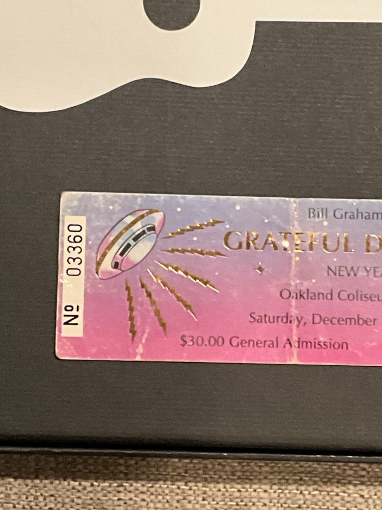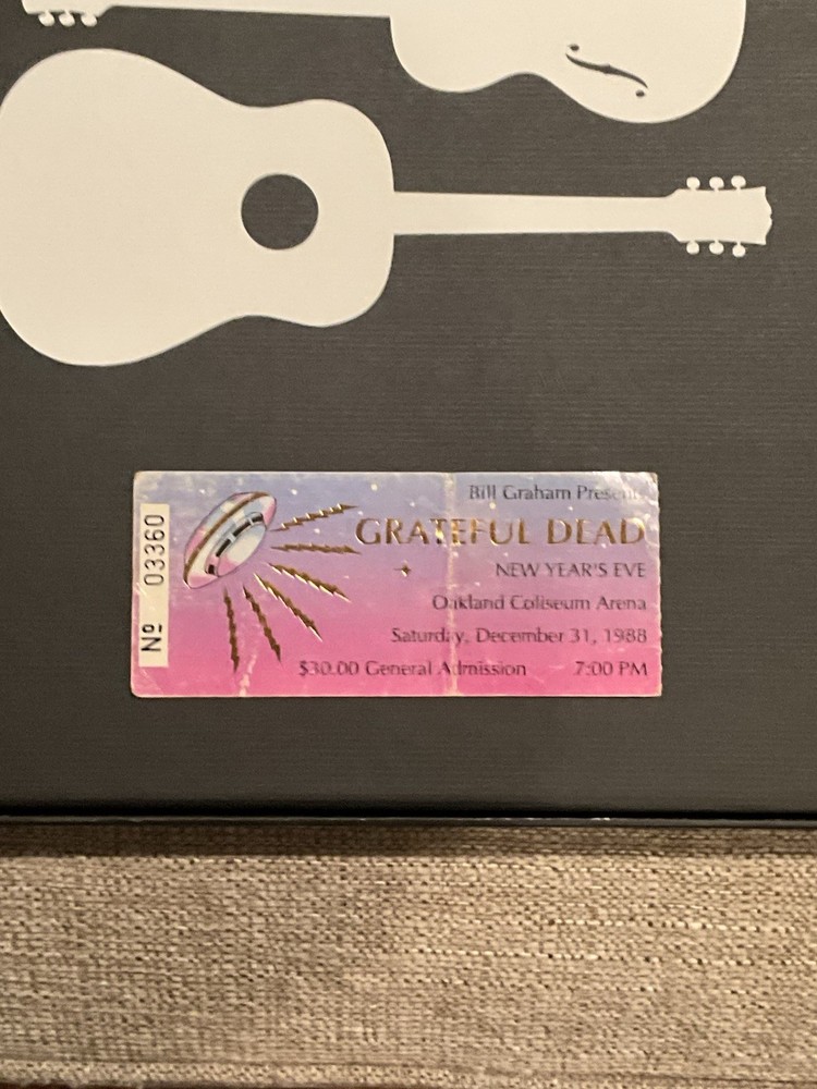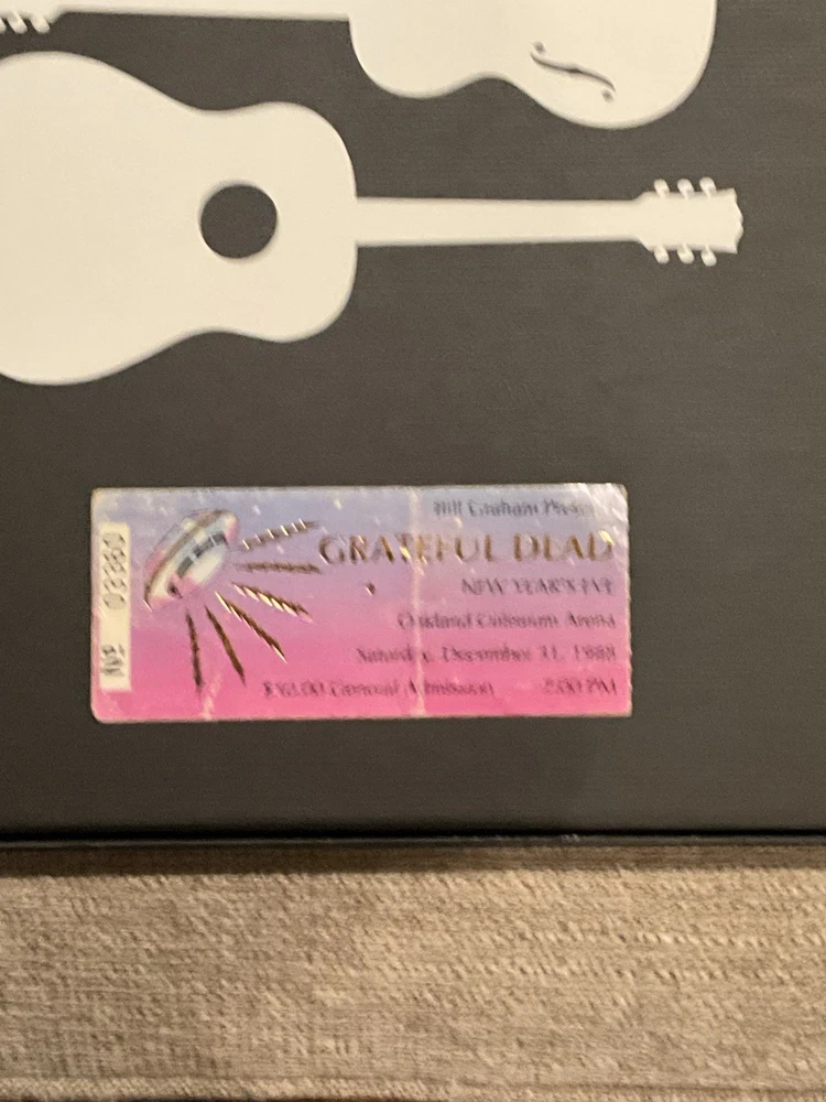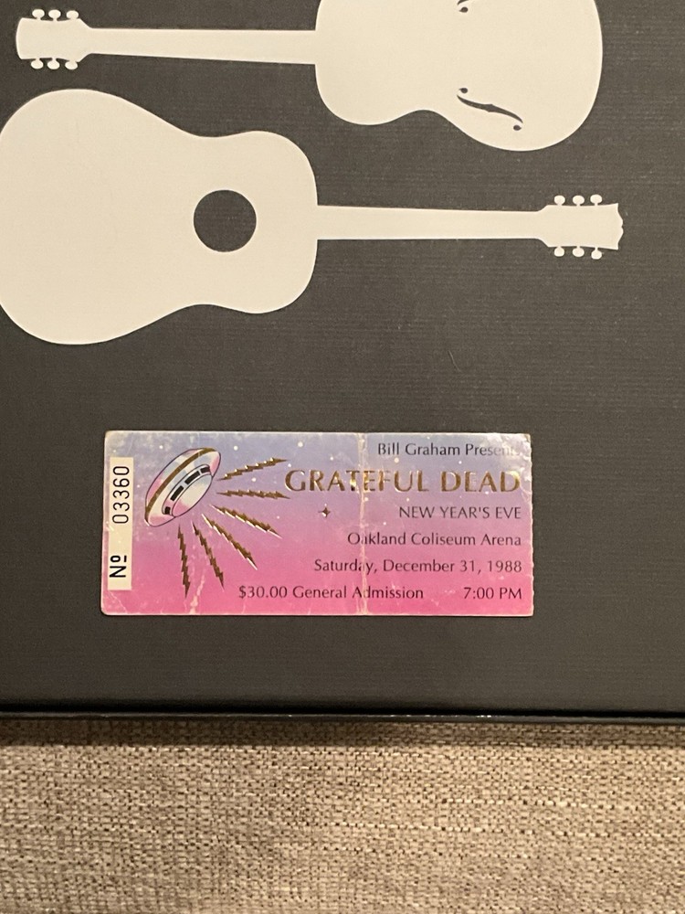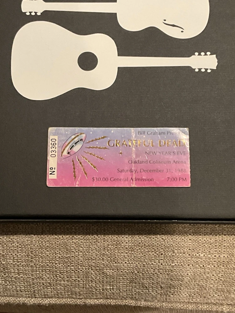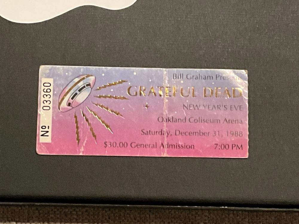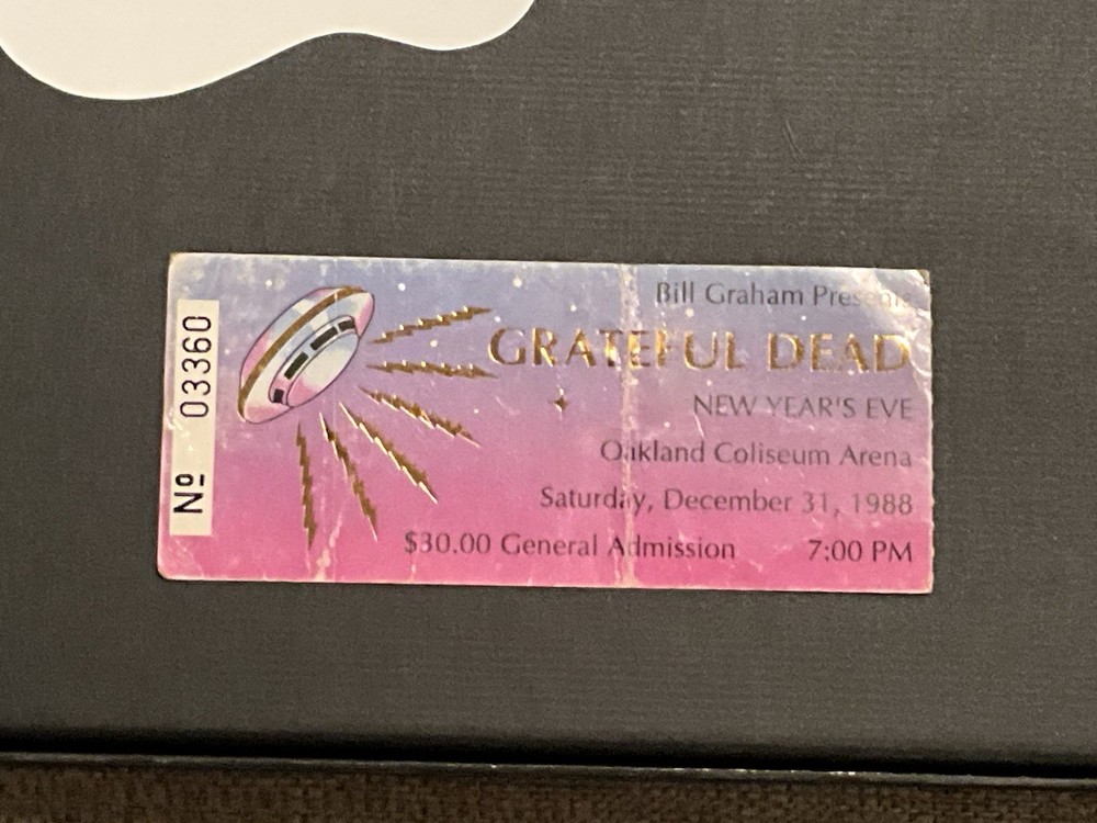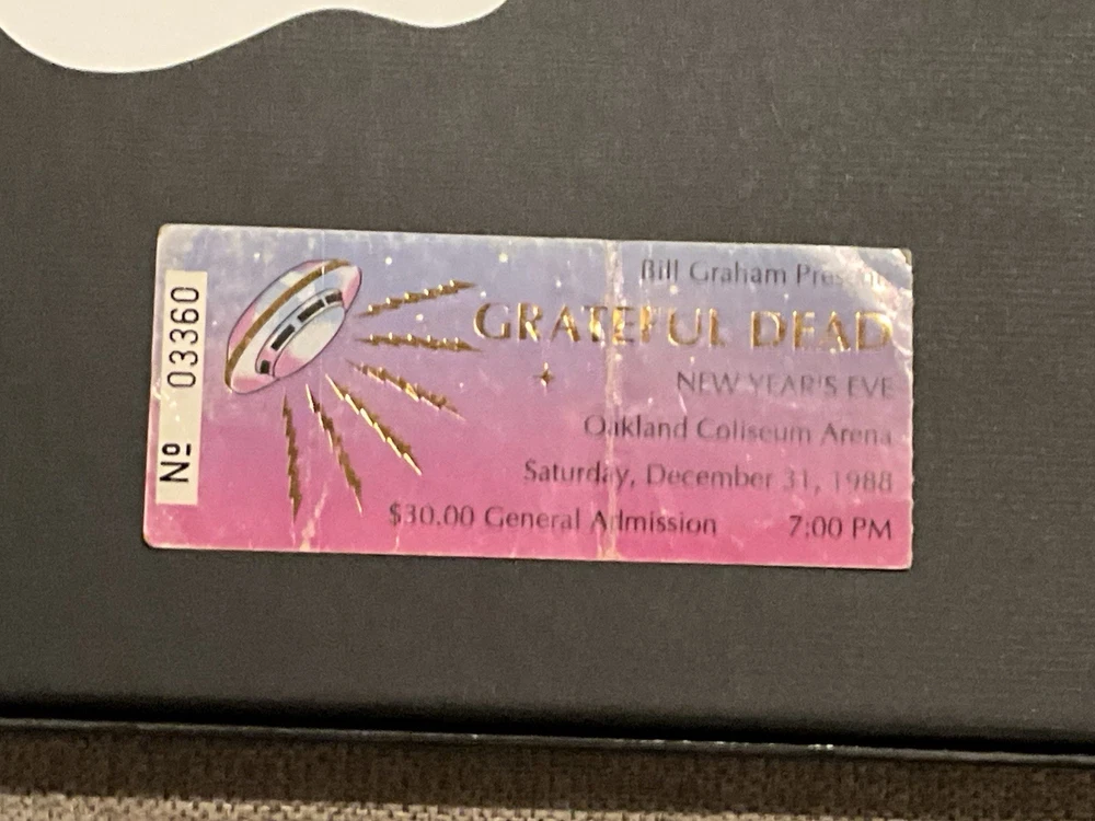 This Grateful Dead ticket stub from New Year's Eve 1988/1989 is a must-have for any true fan of the band. Featuring the iconic UFO Space Ship design, this original piece of concert memorabilia is a unique piece of Grateful Dead history. The ticket stub is from the United States and is in excellent condition, ready to be added to any music collection. Celebrate the spirit of the Grateful Dead and their incredible performances with this rare ticket stub. This is the perfect opportunity to own a piece of rock and pop history, and to show your love for the band. Don't miss out on this chance to own a piece of Grateful Dead memorabilia that will be cherished for years to come.