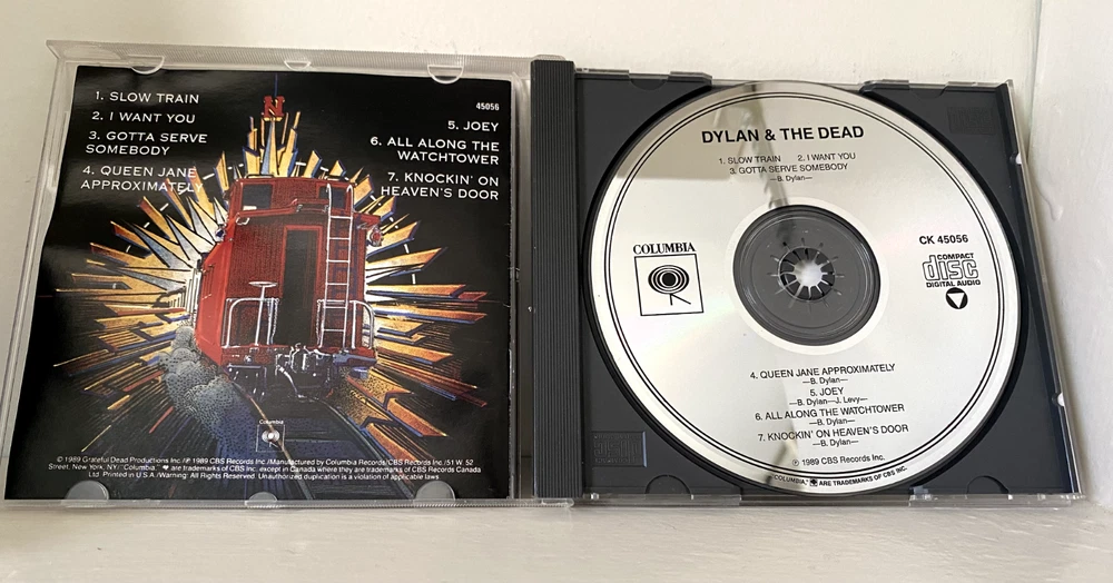 Features: Live Recording, Grateful Dead, Bob Dylan, Dylan & The Dead, 1987 Live In Concert - 1989 release, Dylan & The Dead CD Columbia CK 45056, Jerry Garcia - Bob Weir - Bill Kreutzmann, Phil Lesh - Mickey Hart - Brent Mydland, Rick Griffin Cover Art !, CD ( 1-CD ), 1989 (1987/1989) GDP, Inc. CBS Records, Columbia, Springfromnight1989 Listing, The Grateful Dead, Grateful Dead CD, Bob Dylan CD, Dylan & The Dead CD, Dylan & The Dead 1987 Live CD, Bob Dylan & The Grateful Dead, Rick Griffin Cover Art, Train Locomotive Engine Themed Cover Art Era: 1980s Style: Rock 'n' Roll Grateful Dead, Bob Dylan, 1987 Live, CD: Dylan & The Dead, Columbia, 1989, Rick Griffin Art Run Time: 37 min. gtin13: 0074644505627 Color: Multicolor Language: English Instrument: Acoustic Guitar, Bass Guitar, Drums, Electric Guitar, Guitar, Keyboard, Organ, Percussion, Voice CD Grading: Very Good Plus (VG+) Release Title: Dylan & the Dead Release Year: 1989 Case Condition: Near Mint (NM or M-) Catalog Number: CK 45056 Type: Album Format: CD Inlay Condition: Near Mint (NM or M-) Record Label: Columbia Edition: Collector's Edition, First Edition, Live, 1989 (1987/1989) GDP, Inc. / CBS / Columbia, 1989 GDP, Inc. / CBS Records / Columbia, 1989 Grateful Dead Productions / CBS / Columbia, 1st Edition, Bob Dylan & Grateful Dead, Dylan & The Dead, Dylan & The Dead 1987 Live, Grateful Dead & Bob Dylan, Live Recording Country/Region of Manufacture: United States UPC: 0074644505627 Artist: Grateful Dead/Bob Dylan Genre: Rock 'n' Roll, Oldies Case Type: Jewel Case / Standard ( 1-CD ) Producer: Jeff Rosen (Reissue), Steve Berkowitz (Reissue), Jerry Garcia, John Cutler