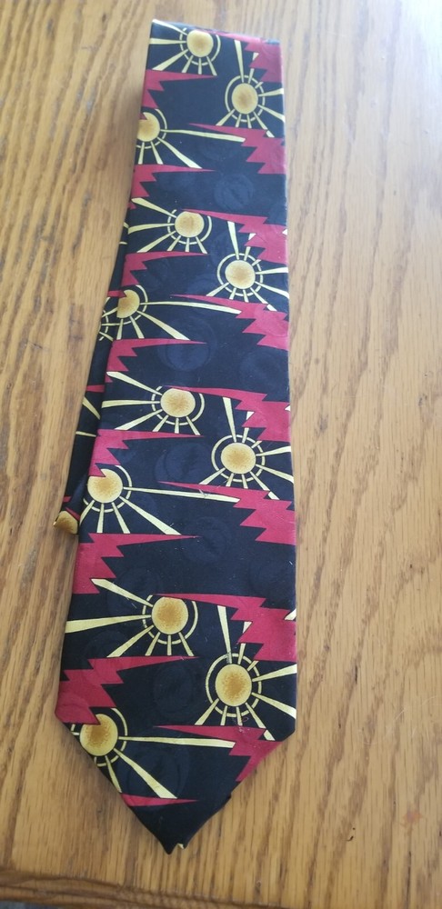 This Grateful Dead Men's Silk Novelty Neck Tie features a classic design with a vibrant red, black, and yellow color scheme. Made from 100% silk fabric in the United States, this vintage tie showcases a music-themed pattern that is perfect for fans of the Grateful Dead. The tie is wide and falls within the classic length range, making it a stylish accessory for men who appreciate designer items with a touch of nostalgia.