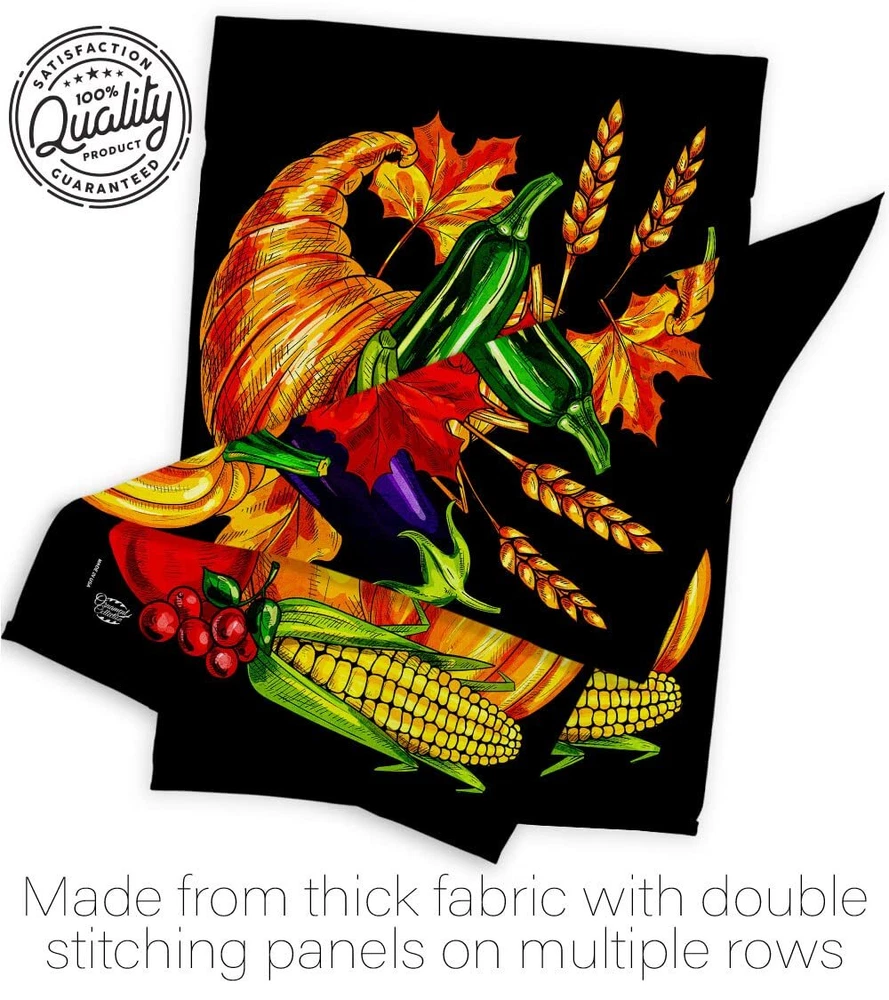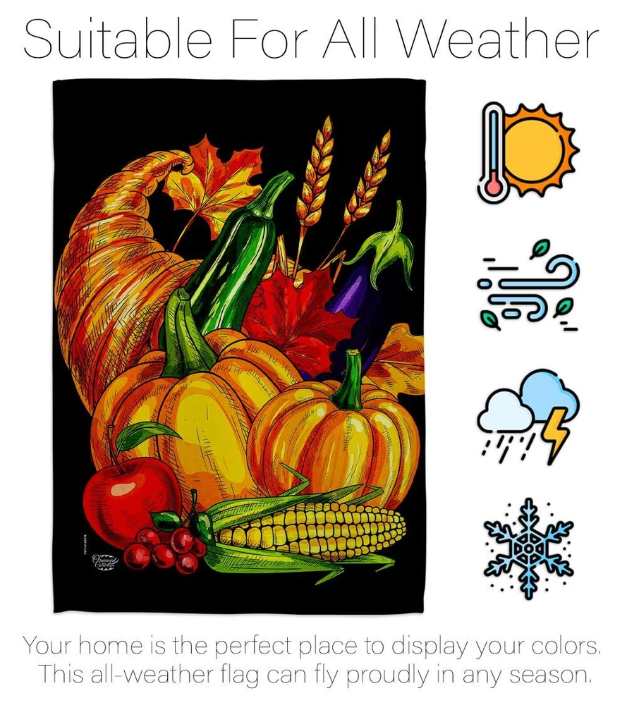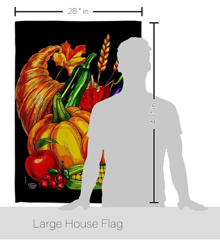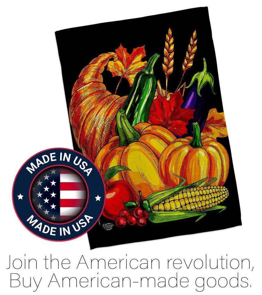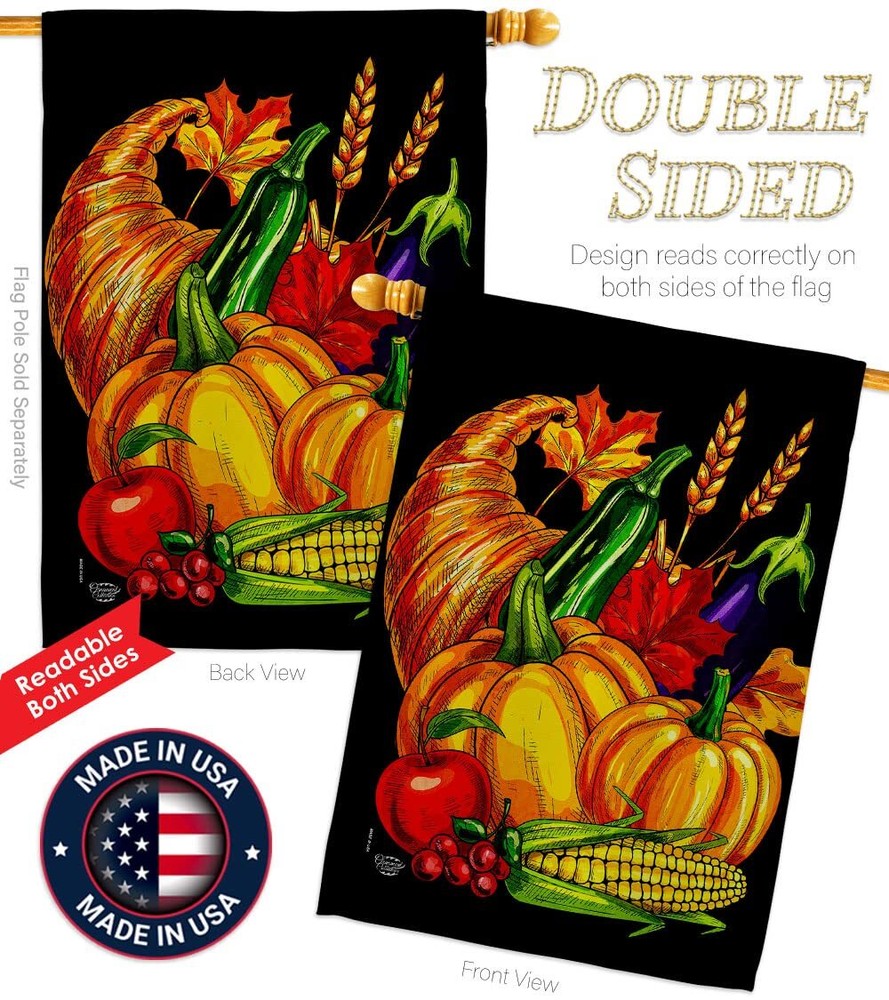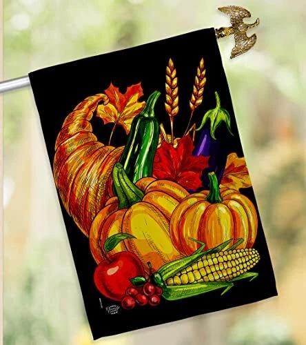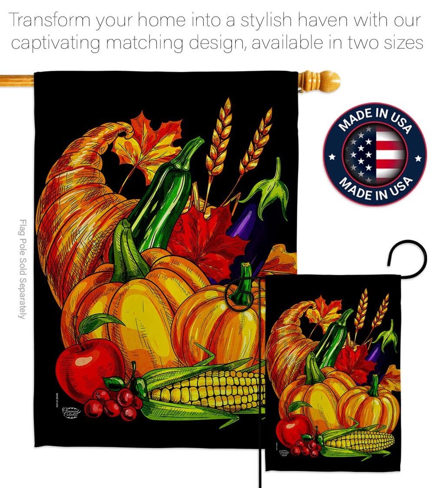 Grateful Fall Cornucopia House Flag Set with Eagle and Turkey for Thanksgiving