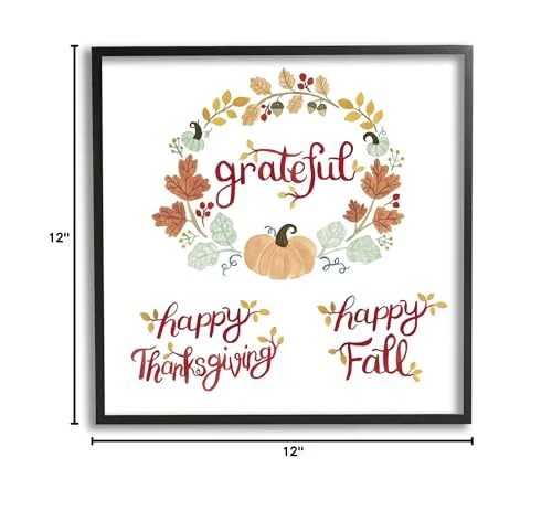 It is time to set up your room with of our fresh new 'Framed Giclee Textured Wall Art’ pieces. You may have seen our Wooden or Canvas products, but our framed products are now available in three alluring styles: black, gray farmhouse and white. Our textured artwork will add more depth and dimension to any space. Each piece is mounted with a 1.5 inch thick ebony wood grain frame that is ready to hang! Looking for a statement piece? We have oversized artwork available. Dimensions: 12 x 1.5 x 12 Framed Wall Art is Ready to Hang - No Installation or Hardware Needed. For Easy Set Up Lean or Layer Artwork on Shelf or Against Wall. Our giclée prints are carefully mounted on a durable MDF backing, and then perfectly finished in a 1.5 inch thick woodgrain frame. Frame colors include black, gray farmhouse and white. Made In USA. Artwork Relates To: Plant; Grateful, Thanksgiving, Fall, Leaves, Acorn, Botanical, Pumpkin Design by Heather Strianese