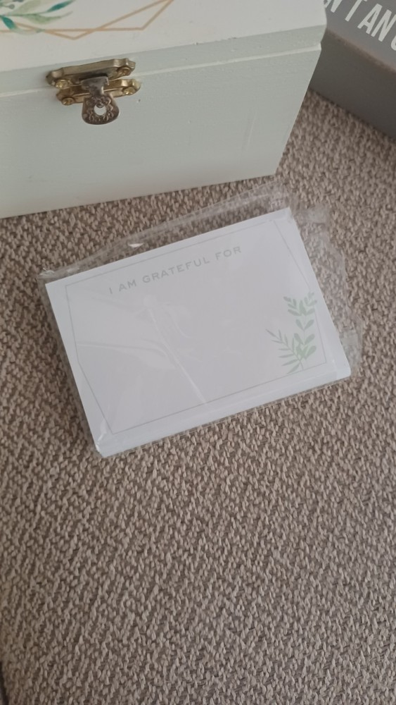 The Gratitude Box is a decorative trinket box with matching paper. It is suitable for all occasions and can be placed in any room. The box features a press fastening closure, is original, and comes unboxed. It is a perfect addition to any collection of decorative collectibles and can be cleaned with a damp cloth for easy maintenance. This Gratitude Box is a beautiful and practical item that can add a touch of elegance to any space.