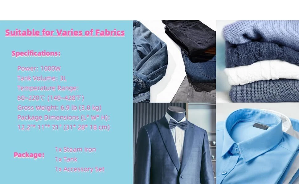 Description Gravity Feed Industrial Electric Steam Iron Set Gravity Iron System Industrial Specifications: Model:b0q6 Temperature Range: 60~220 (140~428) Voltage: 110v Power: 1000w Tank Volume: 3l Weights&Dimensions Package Dimensions (L* W* H): 12.2"* 11"* 7.1" (31* 28* 18 Cm) Gross Weight: 6.9 Lb (3.0 Kg) Features: 1.Flexible and Convenient: the Product Is Compact and Reasonable in Structure, Small in Size and Flexible in Movement. Easy to Install and Use 2.Easy to Use: Easy to Operate, Simple and Easy to Use, Fast Operation, Complete Formation 3.Selected Material: Selected High-quality Accessories, Quick Heat Conduction, Long Life, Safe and Reliable Performance 4.Originality: the Appearance Is High-end and Generous, Fashionable and Simple, Intuitive, and Highly Humanize Gravity Iron System Industrial Gravity Feed Electric Steam Iron Machine 1000W Description Gravity Feed Industrial Electric Steam Iron Set Gravity Iron System Industrial Specifications: Model: b0q6 Temperature Range: 60~220 (140~428) Voltage : 110v Power: 1000w Tank Volume: 3l Weights&Dimensions Package Dimensio ns (L* W* H): 12.2"* 11"* 7.1" (31* 28* 18 Cm) Gross Weight : 6.9 Lb (3.0 Kg) Features: 1.Flexible and Convenient: the Product Is Compact and Reasonable in Structure, Small in Size and Flexible in Movement. Easy to Install and Use 2.Easy to Use: Easy to Operate, Simple and Easy to Use, Fast Operation, Complete Formation 3.Selected Material: Selected High-quality Accessories, Quick Heat Conduction, Long Life, Safe and Reliable Performance 4.Originality: the Appearance Is High-end and Generous, Fashionable and Simple, Intuitive, and Highly Humanized 5.Special Bottom Plate Is Adopted, Which Is Wear-resistant, Heat-conductive, Non-sticky and Highly Efficient. the Bottom Plate Has Ten Air Holes, Which Can Effectively Wrinkle 6.3l Large-capacity Water Bottle: the Temperature Can Be Adjusted at Will. Rotate It Clockwise to Adjust the Temperature 7.Quality Material: Indicator Light Steam Start, Multi-tap Adjustment Button, Environmental Protection Quality Water Pipe, Each Part Is Carefully Selected Packaging Includes: 1 X Industrial Steam Iron 1 X Tank 1 X Accessory Set Welcome to juqibolife 💛 If you have any question , please contact us , and we will reply you as soon as possible. Payment Delivery details Terms of sales About us Contact us Payment We accept ebay payment 。 Fees such as import duties, taxes are not included in the item price or shipping costs. These charges are the buyer's responsibility. Delivery details Shipping: 2-9 working days to: USA Terms of sales We maintain high standards of excellence and strive for hundred percent customer satisfaction. Feedback is very important to us. We hope that you contact us immediately before you give neutral or negative feedback, so that we can address your concerns. It is impossible to address issues if we do not know about them! About us Your satis faction is our ultimate goal. We work hard to earn your trust and future business. Our certified technicians have tested each item before shipping. The unit comes with 1 year limited warranty on all manufacturing defects. a) If you receive a defective item, you may return it or ask for a discount. Please contact us within 14 days after you receive the package. b) What you returned must be intact and in its original packaging as re? u. Customer is responsible for shipping costs of the returned item. c) We will cover the cost of shipping back t with the shipping rate indicated in the registration page. We will send you a new unit or refund the full payment you paid. Thank you. Contact us Business Hour Business Hour: Monday To Friday: 8:30 AM to 5:00 PM (Beijing China time) Due to time zones, our reply to your questions may not be immediately. But within above working time, we will reply your email within 24 hours. If it's non-workdays, please kindly be patient and wait till Monday. Please contact us with ebay message. Please feel free to contact us if you have any questions. Monday To Friday: 8:30 AM to 5:00 PM (Beijing China time) Due to time zones, our reply to your questions may not be immediately. But within above working time, we will reply your email within 24 hours. If it's non-workdays, please kindly be patient and wait till Monday. Please contact us with ebay message. Please feel free to contact us if you have any questions. On Feb 3, 2025 at 22:46:29 PST, seller added the following information: