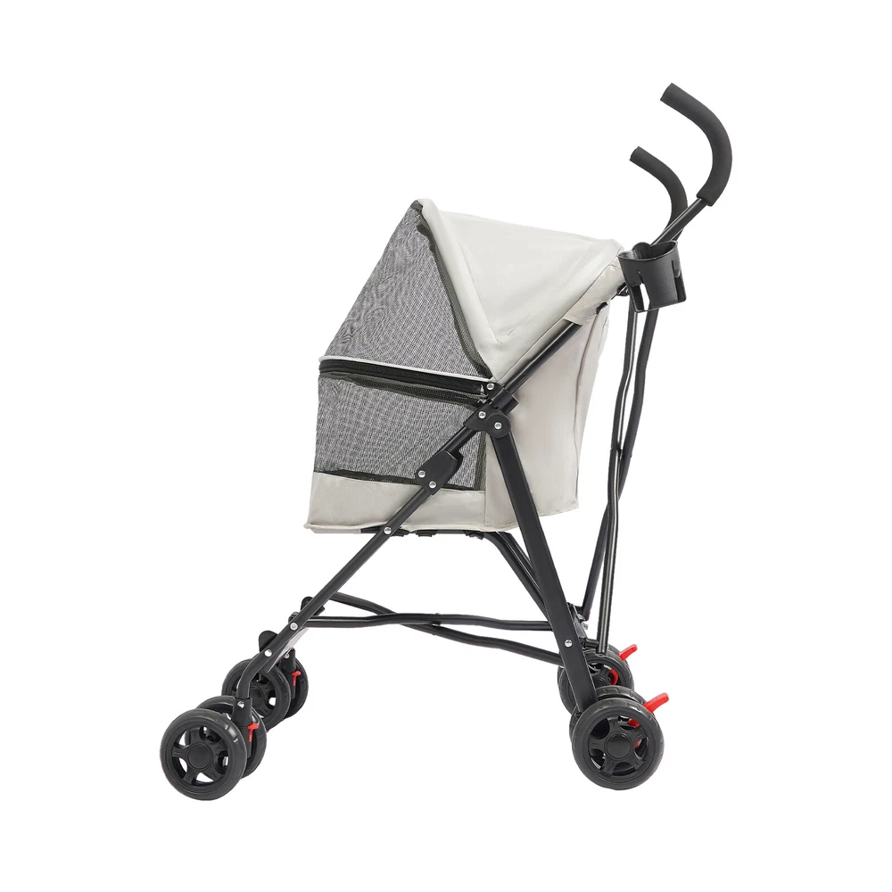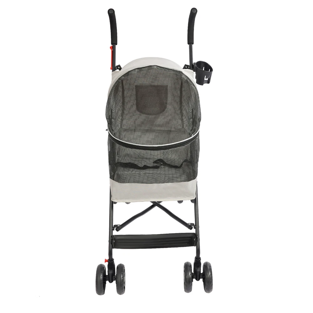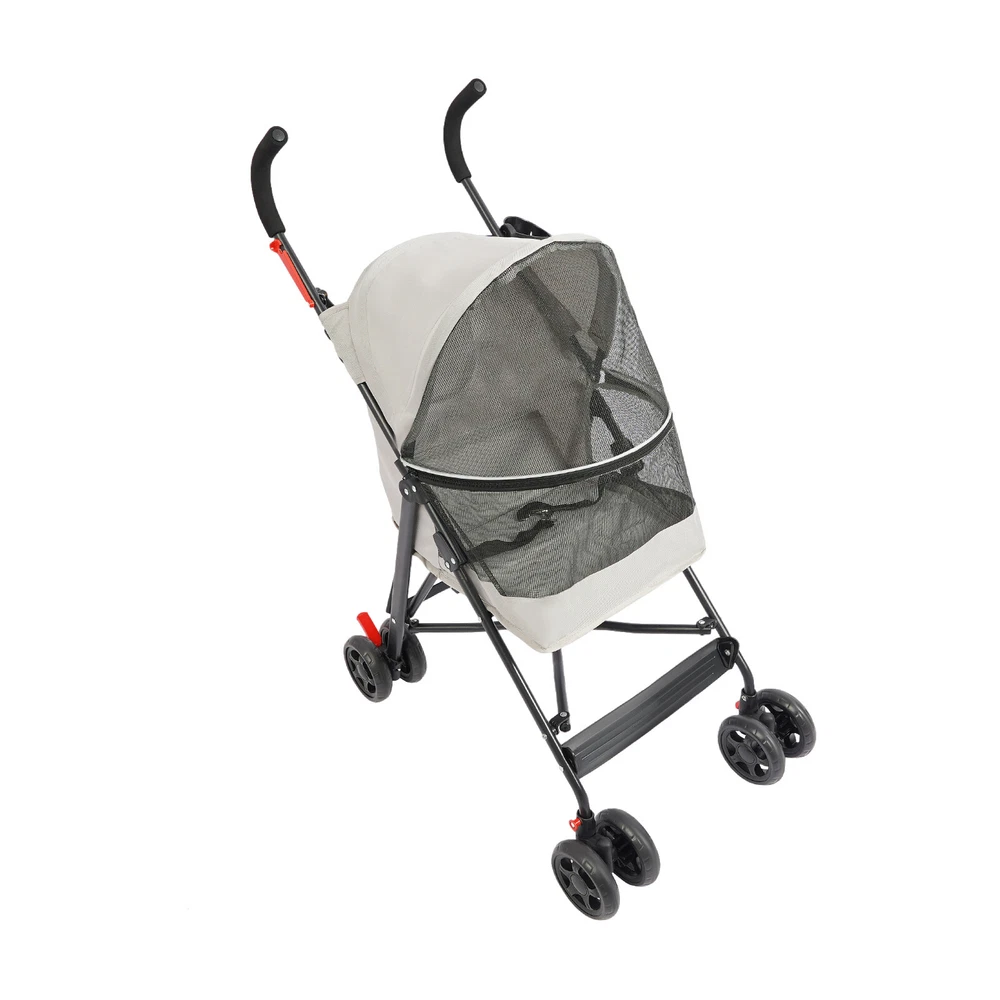 Pet Dog Stroller Travel Carriage 4 Wheels With Cup Holder & Rear Pocket, Gray Description On a sunny afternoon, traveling with your beloved pet and enjoying the charming scenery is such a pleasant thing! Our pet stroller is made of high-quality materials to ensure durability. The stable structure, comfortable seat cushion, and breathable window greatly improve the comfort of pet riding. The built-in safety rope makes your pet's travel safer! What are you still hesitating about? Let this lightweight pet stroller bring you a relaxed and comfortable travel experience! Key Features Sturdy and Durable: It is mainly made of high-quality Oxford cloth and iron, and the surface is treated with a spray molding process, which is waterproof, rust-resistant, scratch-resistant, sturdy, and durable to ensure a long service life. Good Load-bearing Capacity: The triangular construction and sturdy frame can safely hold up to 22 lbs, allowing your pet to ride with confidence. Comfortable Ride: It comes with a comfortable cushion and spacious seating space(15*13 inches) to ensure your pet's comfort while traveling. The breathable mesh window not only satisfies the pet's curiosity about the outside world but also promotes air circulation to keep them cool and comfortable. Safety Design: It has a built-in safety rope to prevent your pet from accidentally breaking free, and the zip closure design prevents your pet from jumping out during movement, so you can travel safely with your pet. User-Firendly: The zipper can open 180 degrees, making it easy for pets to interact intimately with owners and enhance their relationship. The Oxford cloth cover has a certain degree of waterproofing, so you don't have to worry about your pet getting wet from the rain. Easy to Carry and Store: It is designed with a quick folding mechanism, allowing you to easily fold it into a compact size by simply removing the folding buckle and pressing down on the frame, making it convenient to store in the trunk of your car or in the corner of your home. The lightweight design makes transportation easier. Flexible Movement and Fixation: The two front wheels that can rotate 360 ° make the trolley move smoothly and flexibly, and the rear wheels with brakes are easy to fix at any time, enhancing the convenience of use. Ready to Use: Our product is mostly assembled, and once received, you only need to install the casters, saving time and effort. Easy to Clean: The smooth surface and simple construction allow you to easily wipe away dust with a rag. The removable and washable cushion saves time and effort. Details Round Corners: The rounded and smooth corners can effectively protect pets from scratches and improve the safety of use. Cup Holder: It can securely hold water cups or bottles(not included), making it easy for you to travel. Rear Pocket: It is convenient for you to carry some tissues, food, and other small items on the go. Comfortable Handle: The high-density foam tube design provides a soft and comfortable grip, reducing hand fatigue for long-term outdoor use. Application It is suitable for carrying small and medium-sized dogs or cats under 22 lbs and is suitable for various occasions such as walking, shopping, traveling, etc., to meet the needs of different scenarios. Specifications Color: Blue/Pink/Black/Gray Material: Oxford Cloth, Iron, Foam Tube Process: Spray Molding Load-bearing Capacity: Within 10kg/22 lbs Applicable Pets: Small & Medium-sized Dogs/Cats Age Range (Description): All Life Stages Assembly Required: Yes Cockpit Size: 37*32*53cm/15*13*21in Product Size(Folded): 103*20*22cm/41*8*9in Product Size(Unfolded): 55*45*97cm/22*18*38in Package Size: 76.5*41*13cm/30.12*16.14*5.12in Gross Weight: 5kg/11.02 lbs Net Weight: 4.3kg/9.48 lbs Package Included 1*Pet Stroller 2*Casters Notes 1.Please confirm the size of the product before purchasing. 2.Please use it within the load-bearing range of the product. 3.Please allow the slight color difference caused by the shooting light and 1-3 cm error due to manual measurement, and make sure you do not mind before ordering. Brand CNCEST Feature! Stable performance, durable Feature ❤ ❤Premium Material❤Long Service Life❤Creative Design❤ Feature ★ ★Good Quality Guarantee★ Type Pet Stroller Dog Size Small & Medium-sized Dogs/Cats Dog Breed Cats and dogs under 10 kg Material Oxford Cloth, Iron, Foam Tube Process Spray Molding Load-bearing Capacity Within 10kg/22 lbs Age Range (Description) All Life Stages Assembly Required Yes Cockpit Size 37*32*53cm/15*13*21in Product Size(Folded) 103*20*22cm/41*8*9in Product Size(Unfolded) 55*45*97cm/22*18*38in Package Size 76.5*41*13cm/30.12*16.14*5.12in Gross Weight 5kg/11.02 lbs Net Weight 4.3kg/9.48 lbs Tip❤ If you have any question , please contact us ★Feature★ ★★★Reliable Quality★★★Easy installation★★★Ideal Gift★★★ color grey