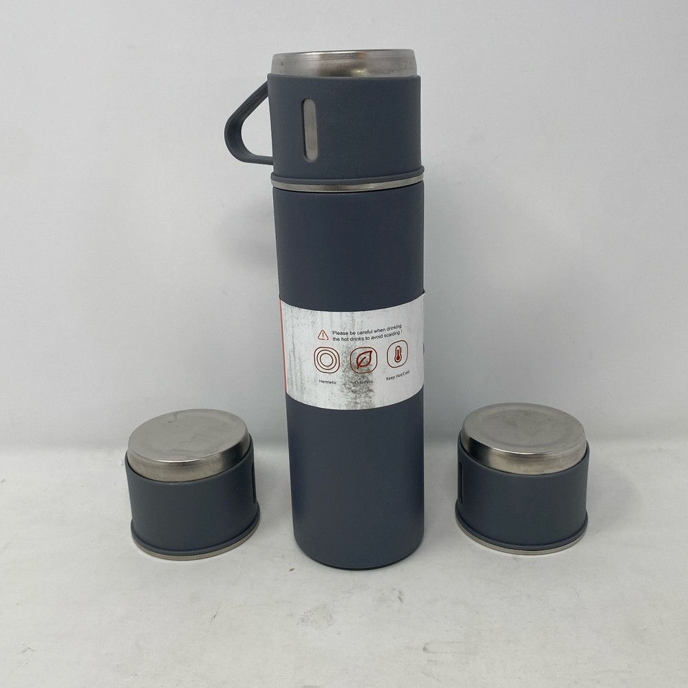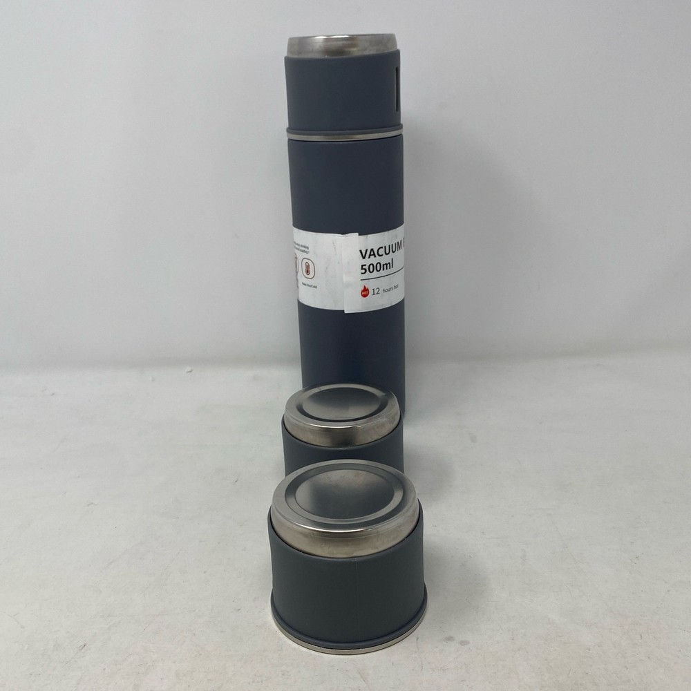 Condition: New - Open Box See photos for full visual reference Model: Gray 500ml Vacuum Flask Set w/ 3 Cups Stainless Steel Insulated At Unturned, we were shocked to discover how many perfectly functional returns were being wasted. That's why we made it our mission to offer these e-commerce returns—often overlooked and discarded—at unbeatable prices. We carefully inspect and test all our products to ensure quality and accurately describe their condition. However, if you receive an item that does not match the description or meet expectations, please reach out, and we will make it right!