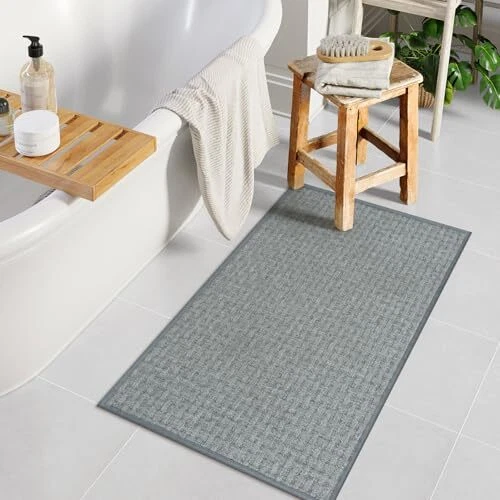 UPC: Does Not Apply Manufacturer: Does Not Apply Item Length: 1 Pile Height: Low Pile Indoor Outdoor Usage: Indoor Style: Modern Country of Origin: China MPN: Does Not Apply Brand: Does Not Apply Age Range Description: All Ages Pattern: Trellis Product Dimensions: 24"L x 16"W Room Type: Vanity, Sink, Toilet, Bathtub, Door Mat Item Width: 1 Rug Form Type: Bath Mat Date First Available: November 1, 2024 Shape: Rectangular Size: 16x24 inch Back Material Type: Rubber Type: Does Not Apply Occasion: bathroom Recommended Uses For Product: Bathroom, Laundry Room, Entryway, Bedroom, Kitchen, Hallway Product Care Instructions: Machine Wash Weave Type: Machine Made Is Autographed: No gtin13: Does Not Apply Material: Cotton Special Feature: Absorbent, Fade Resistant, Quick Dry, Non Slip, Washable Theme: Abstract Color: Grey Water Resistance Level: Water Resistant Is Stain Resistant: Yes Item Height: 1 EAN: Does Not Apply Item Weight: 12 ounces Seasons: All seasons Construction Type: Machine Made