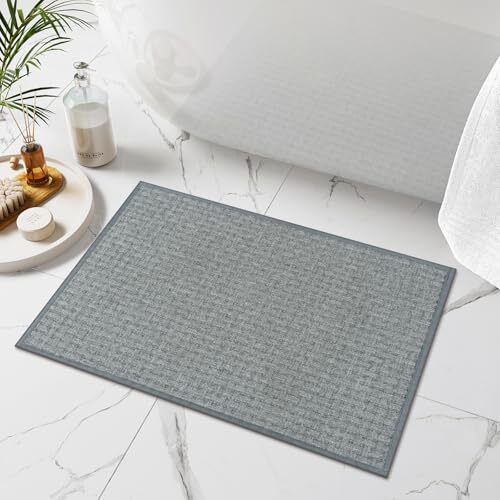 Gray Non-Slip Waffle Bath Mat Modern 16x24 Inch Grey Bathroom Rug