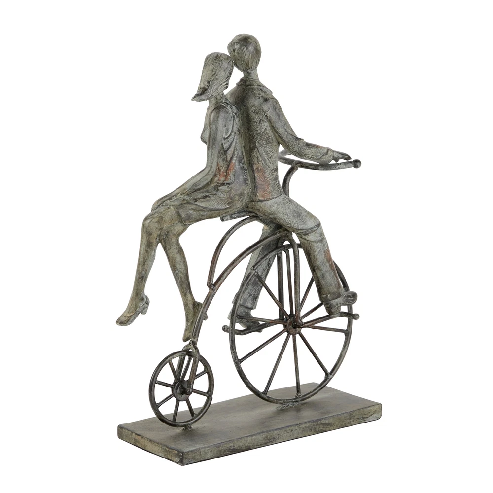 Tabletop sculptures are meant to add drama and character to rather plain pieces of furniture and muted interiors. This couple on a bike figurine does the work by functioning as a noticeable desk accessory and paperweight in traditional and vintage-themed rooms. It stands 13" high, measures 9" long, is 5" wide, and was crafted using polystone. This tabletop decor with a distressed finish is recommended for gifting, home decoration, and souvenir collections. Product is recommended for gifting, home decoration, and souvenir collections. Wipe clean with a dry cloth. Suitable for indoor use only. Traditional style. This item comes shipped in one carton. Polystone sculpture makes a great gift for any occasion.Crafted in a traditional style that fits great in most homesThis charming sculpture is Free Shipping Over $49.99* Details Gray Polystone People Sculpture with Bike - 9 x 5 x 13 Product Description: Tabletop sculptures are meant to add drama and character to rather plain pieces of furniture and muted interiors. This couple on a bike figurine does the work by functioning as a noticeable desk accessory and paperweight in traditional and vintage-themed rooms. It stands 13" high, measures 9" long, is 5" wide, and was crafted using polystone. This tabletop decor with a distressed finish is recommended for gifting, home decoration, and souvenir collections. Product is recommended for gifting, home decoration, and souvenir collections. Wipe clean with a dry cloth. Suitable for indoor use only. Traditional style. This item comes shipped in one carton. Polystone sculpture makes a great gift for any occasion. Crafted in a traditional style that fits great in most homes This charming sculpture is crafted with solid polystone Item features a matte grey antique finish with texture surface and facial detail This display functions as desk accessory and paperweight It measures 9"L x 5"W x 14"H and weighs 3 lbs A couple riding penny farthing bicycle on a rectangle base with solid pattern Wipe clean with a dry cloth Molded polystone sculpted to form figures with chisel technique to create surface texture mounted on flat base