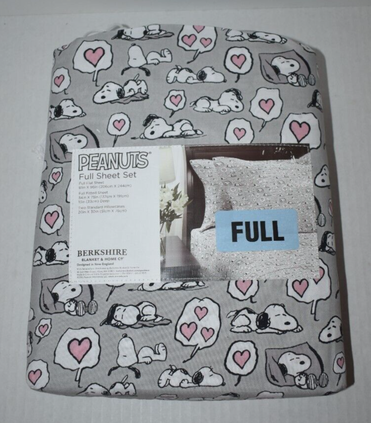 Brand: Berkshire Material: Polyester Pattern: Snoopy Dreaming Of Hearts Size: Full Color: Gray Type: Sheet Set