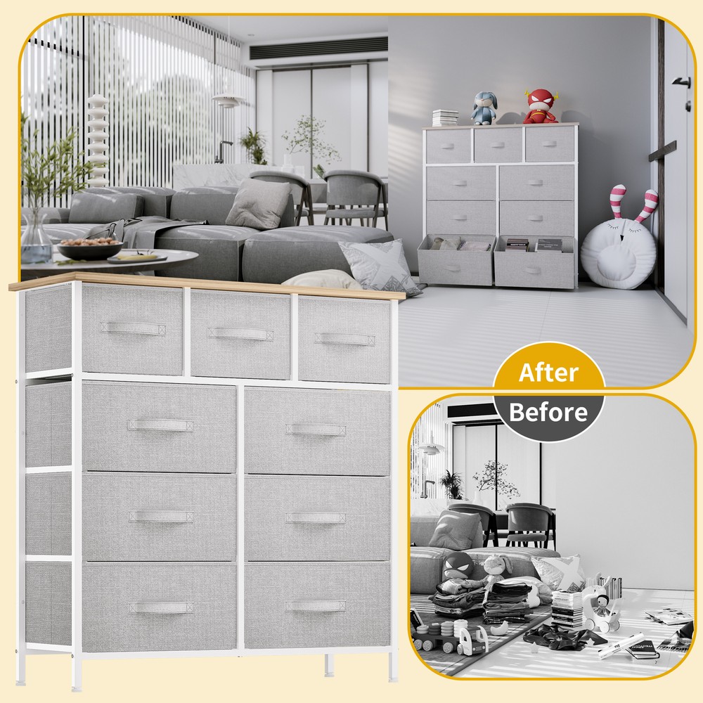 Product Description Featured types you may look for 10 Drawers Dresser Dark Gray 10 Drawers Light Gray 8 Drawers Light Gray 8 Drawers Light Brown YITAHOME Nightstand with 9 Drawers Dresser Storage Tower Fabric Organizer Closet Item Description: YITAHOME - PURE & EASY A multifunctional dresser storage tower for every household --- Providing additional storage space and convenience in the living room or bedroom to make your home more comfortable and organized. Putting in closet to organize everything - clothes, toys, belts, socks, hats, and gloves to prevent clutter on the floor. YITAHOME & Fabric Storage Keep control of clutter & create a spacious, tidy home --- Owning a storage dresser is a smart decision if you are tired of hurriedly looking around for objects in a messy room. This purchase is an ideal opportunity to teach your kids how to manage their items. Yitahome’s products provide more possibilities to create a relaxing, more organized life. About this item QUALITY CONSTRUCTION: Our dresser is built to last with a sturdy metal frame and a durable MDF wooden top. It features 9 removable drawers with easy-to-pull wooden handles. The dresser is supported by 4 adjustable plastic legs that prevent floor scratches. Additionally, the innovative crossbar design on the back enhances stability, and the dresser can be securely attached to a wall using screws. DURABLE FABRIC: The front side of the drawers is made with premium cationic polyester fabric, while the surrounding sides are covered with breathable, non-woven synthetic fabric. The fabric is easy to care for - simply wipe clean with a damp cloth and let it air dry. EASY ASSEMBLY: We provide detailed instructions for a hassle-free installation. All necessary pieces and accessories are included in the package. Assembly only requires fastening a few screws. VERSATILE COLOR SCHEME: Our dresser boasts a sleek and modern design with gray black fabric drawers, a sturdy black metal frame, and a waterproof wooden tabletop. Its versatile color scheme makes it perfect for various spaces such as living rooms, bedrooms, hallways, entryways, closets, nurseries, and more. LARGE STORAGE CAPACITY: The TAUS 9-Drawer dresser provides ample storage space for your clothes, scarves, socks, T-shirts, pants, sunglasses, books, small toys, and more. Its overall dimensions are 39.4" L x 11.8" W x 39.4" H, with large drawer dimensions of 18.1" L x 11" W x 8.5" H and small drawer dimensions of 11.8" L x 11" W x 8.5" H. Item Specifics: Frame Dimensions: 39.4" L x 11.8" W x 39.4" H Large drawer dimensions: 18.1" L x 11" W x 8.5" H; Small drawer dimensions: 11.8" L x 11" W x 8.5" H Material: iron frame + non-woven synthetic fabric + MDF board + cardboard + fabric handle Product care: Wipe clean with a wet cloth and let it dry Assembly required What's in the Box? - 9-drawer storage chest - Assembling hardware kits - Instructions More Display: Shipping ● The shipping rates listed are only for residential or commercial destinations in the continental 48 United States. All international sales will go through eBay Global Shipping Program.please ask us if there are any questions. ● We only ship the item to the address that is sent to us at the time of checkout. Please verify the correct shipping address in your PayPal account before making your payment. If we ship your item to an old or invalid address and you are not able to locate the item, we are not responsible for shipping a replacement. ● Currently, we do not ship to Hawaii, Alaska, Puerto Rico,APO/FPO/PO Boxes. ● We use USPS, UPS & FedEx as shipping method. ● Payments cleared before 12 PM PST, will be shipped on the same day. Payment ● We accept PayPal and all forms of credit card. ● We will only ship to the confirmed Paypal shipping address given with the payment. ● We do not offer local pick up service. Return ● 30 days Money Back Guarantee. ● If any package that needs to be returned, please contact our customer service first to receive a RMA form. ● All return items MUST be in brand new condition. About Us ● Specialized in aftermarket auto parts since 2012, we source and work directly with professional manufacturers to provide the highest quality parts at the most economical prices. ● We also has over 5 years of shipping experience with FedEx and USPS . Our Packing Quality is Guaranteed , Item Ship-ping is timely! Product Details Shipping 1.The shipping rates listed are only for residential or commercial destinations in the continental 48 United States. All international sales will go through eBay Global Shipping Program.please ask us if there are any questions. 2.We only ship the item to the address that is sent to us at the time of checkout. Please verify the correct shipping address in your PayPal account before making your payment. If we ship your item to an old or invalid address and you are not able to locate the item, we are not responsible for shipping a replacement. 3.Currently, we do not ship to Hawaii, Alaska, Puerto Rico,APO/FPO/PO Boxes. 4.We use USPS, UPS & FedEx as shipping method. 5.Payments cleared before 12 PM PST, will be shipped on the same day. Payment 1.We accept PayPal and all forms of credit card. 2.We will only ship to the confirmed Paypal shipping address given with the payment. 3.We do not offer local pick up service. Return 1.30 days Money Back Guarantee. 2.If any package that needs to be returned, please contact our customer service first to receive a RMA form. 3.All return items MUST be in brand new condition. About Us 1.Specialized in aftermarket auto parts since 2012, we source and work directly with professional manufacturers to provide the highest quality parts at the most economical prices. 2.We also has over 5 years of shipping experience with FedEx and USPS . Our Packing Quality is Guaranteed , Item Ship-ping is timely!