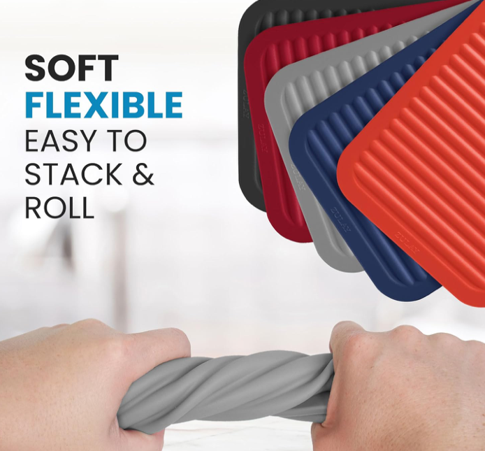 ✨ Zulay Kitchen Silicone Trivets 9x12inch 2Pack Gray Heat Resistant Multipurpose Mats Protect your surfaces with these versatile, premium-quality heat protectors! 🍳 Zulay Kitchen's set of two rectangular silicone trivets provides exceptional heat protection with their extra-thick 0.47" design. These generously sized 9"x12" mats feature raised edges and deep grooves that create stable, non-slip platforms for hot cookware – safeguarding your countertops and tables from heat damage up to 480Β°F while adding functionality to your kitchen setup. Superior Protection: πŸ”₯ Heat resistant from -40Β°F to 480Β°F for versatile use πŸ“ Extra thick 0.47" design with raised edges for security 🧊 Safe for use from freezer to microwave applications πŸ” Wavy stripe pattern enhances grip and stability 🧠 Food-grade silicone construction without harmful chemicals Multipurpose Functionality: 🍲 Perfect base for hot pots, pans, and bakeware 🧴 Functions as jar opener for tight lids πŸ₯„ Serves as spoon rest during cooking 🍽️ Works as dish drying mat on countertops πŸ”Œ Ideal base for appliances like air fryers and microwaves Pro Tip: πŸ’‘ Beyond their obvious heat protection uses, these silicone mats are perfect for rolling out and kneading dough, as nothing sticks to their surface. The raised edges also contain spills, making them ideal work surfaces for messy kitchen tasks that might otherwise damage your countertops. Explore our complete selection of premium kitchen accessories designed to enhance your cooking experience! Our customer service team is always ready to help you find the perfect solutions for your specific kitchen needs.