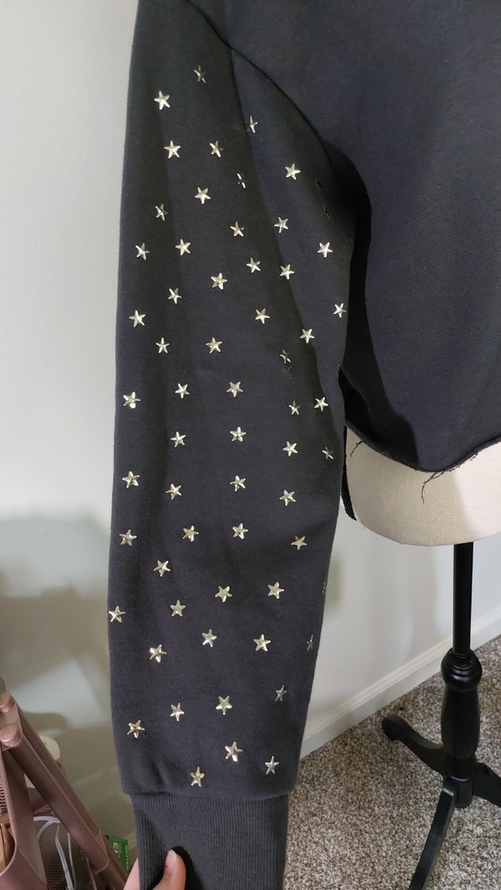 This fleece is so cozy and stylish! The cropped cut-off hem gives it a cool, edgy look, and the gold star studs add a fun touch. It’s super warm and feels like it’s barely been worn—super soft and in perfect condition. Fits true to size, and I love how unique it is!
