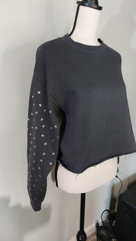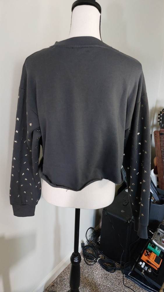 In excellent condition, may not have ever been worn. Cut off Cropped hem design. Very warm and fleecey! Gold star studs. Size L.